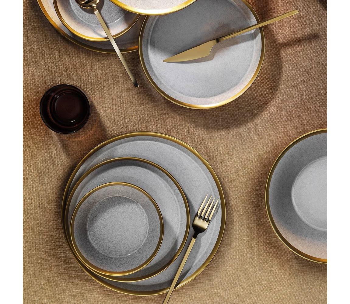 Elegantne sööginõude komplekt, mis sobib nii igapäevaseks kasutamiseks kui ka pidulikeks sündmusteks. Valmistatud 100% portselanist (koostis: kaoliin, kvarts, feldspaat), mis tagab suure vastupidavuse ja pikaealisuse. Sobib kasutamiseks nõudepesumasinas ja mikrolaineahjus. Komplekt sisaldab: Serveerimistaldrik: 27 cm (2 tk). Sügav taldrik: 21 cm (2 tk). Magustoidutaldrik: 21 cm (2 tk). Kauss: 15 cm / 300 ml (2 tk).