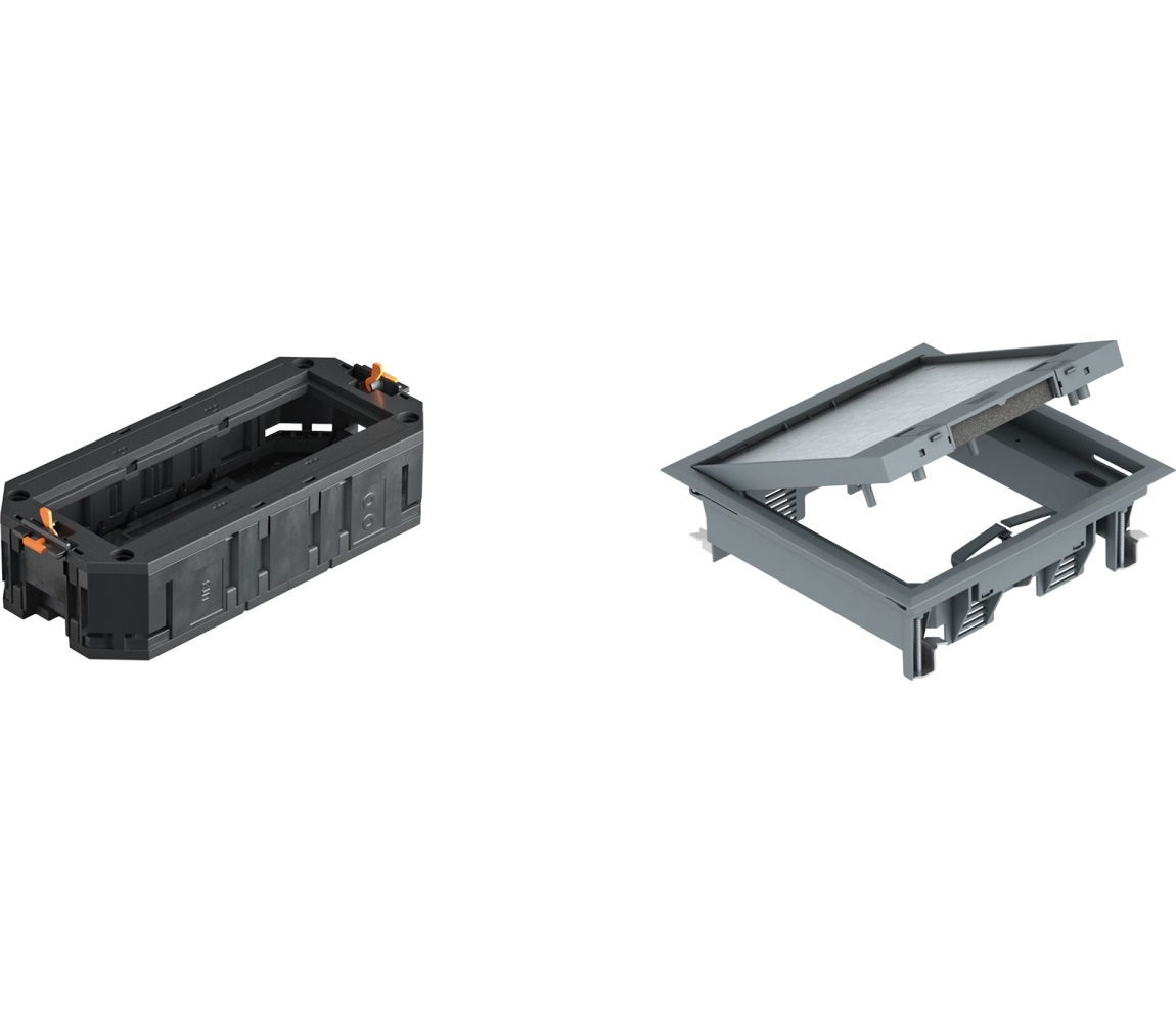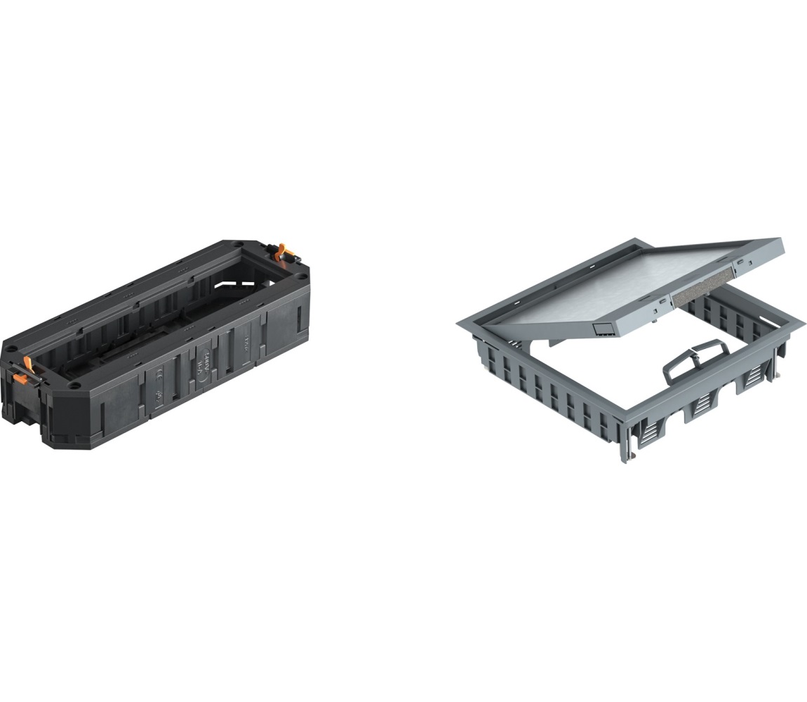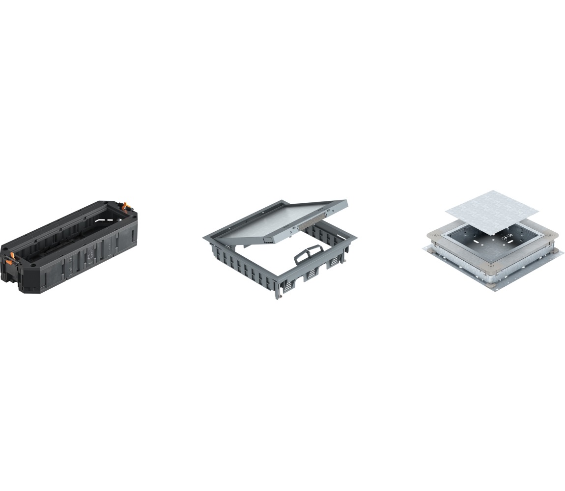 Põrandakonstruktsioonide kanalite jaoks mõeldud seadmekarbiga kast, mille külgseinad on valmistatud terasplekist. Valitud nimimõõtmetega sisseehitatud seadmete paigaldamiseks. Sujuvalt reguleeritav tasapinnale (kiire tasandamise võimalus). Sobib ka kõrge koormuse jaoks. Tarne ajal on karbi sissepääs suletud paigalduskaitsekattega. Paigaldus sügavus: 70 - 125 mm. Kuni 9 seadme paigaldamiseks modulis 45x45. Paigaldatavate seadmete arv: 9. Seadmestiku sisestuste arv: 3. Põrandakatte paksus: ≤ 5 mm. Tasandamisvahemik: 70 mm - 125 mm.