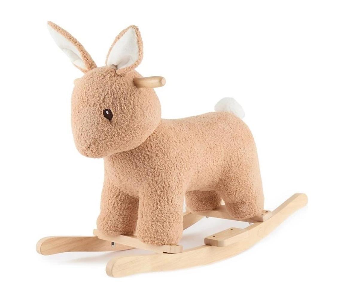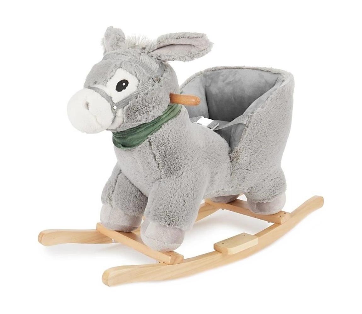 See armas kiikhobune kujutab eeslit ja rõõmustab nii poisse kui tüdrukuid alates 9. elukuust. Pehme fliis ja tugev puidust raam toetavad motoorseid oskusi ning pakuvad ohutut ja lõbusat kiikumiskogemust. Eeslil on pehme ja mugavalt polsterdatud iste turvavööga, mis tagab maksimaalse mugavuse ja kaitse ka kõige väiksematele lastele. Kiikumine arendab motoorikat, tasakaalu ja soodustab liikumisaktiivsust. Stabiilne massiivpuidust konstruktsioon on varustatud ümberpööramise kaitsega ning lapsed saavad hoida puidust käepidemetest kinni. Madala istmekõrgusega on väikestel lastel lihtne turvaliselt istuda ja maha tulla. Puhastage niiske lapiga ja õrna seebiga. Ärge peske jooksva vee all ja laske loomulikult kuivada. Materjal: puit, polüester. Istemekõrgus: umbes 14 cm. Kandevõime: 26 kg.