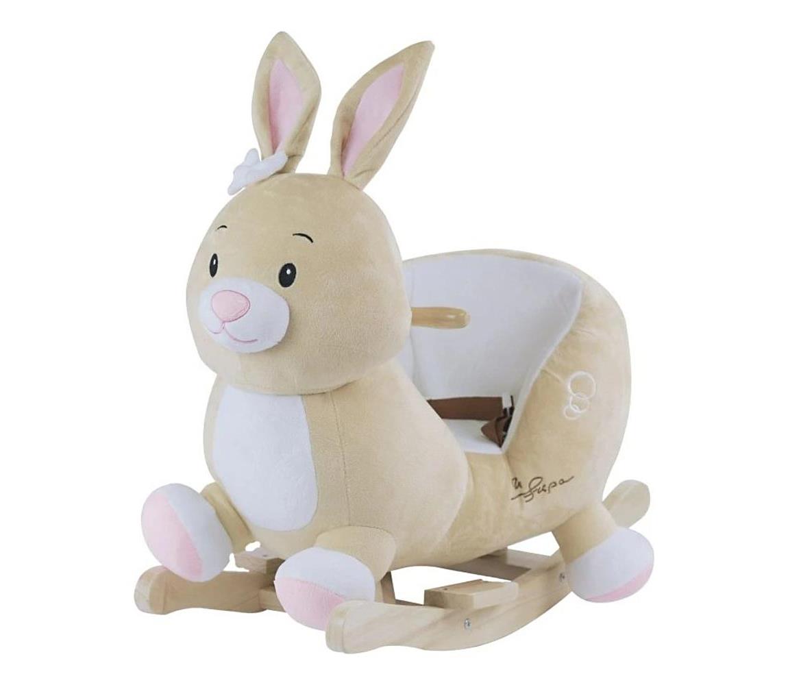 See armas kiikhobune jänese kujul rõõmustab nii poisse kui tüdrukuid alates 9. elukuust. Pehme fliis ja tugev puidust raam toetavad motoorseid oskusi ning pakuvad ohutut ja lõbusat kiikumiskogemust. Jänesel on pehme ja mugavalt polsterdatud iste turvavööga, mis tagab maksimaalse mugavuse ja kaitse ka kõige väiksematele lastele. Kiikumine arendab motoorikat, tasakaalu ja soodustab liikumisaktiivsust. Stabiilne massiivpuidust konstruktsioon on varustatud ümberpööramise kaitsega ning lapsed saavad hoida puidust käepidemetest kinni. Madala istme kõrgus võimaldab väikestel lastel turvaliselt istuda ja maha tulla. Puhastage niiske lapiga ja õrna seebiga. Ärge peske jooksva vee all ja laske vabalt kuivada. Materjal: puit, polüester. Iste kõrgus: umbes 14 cm. Kandevõime: 26 kg.