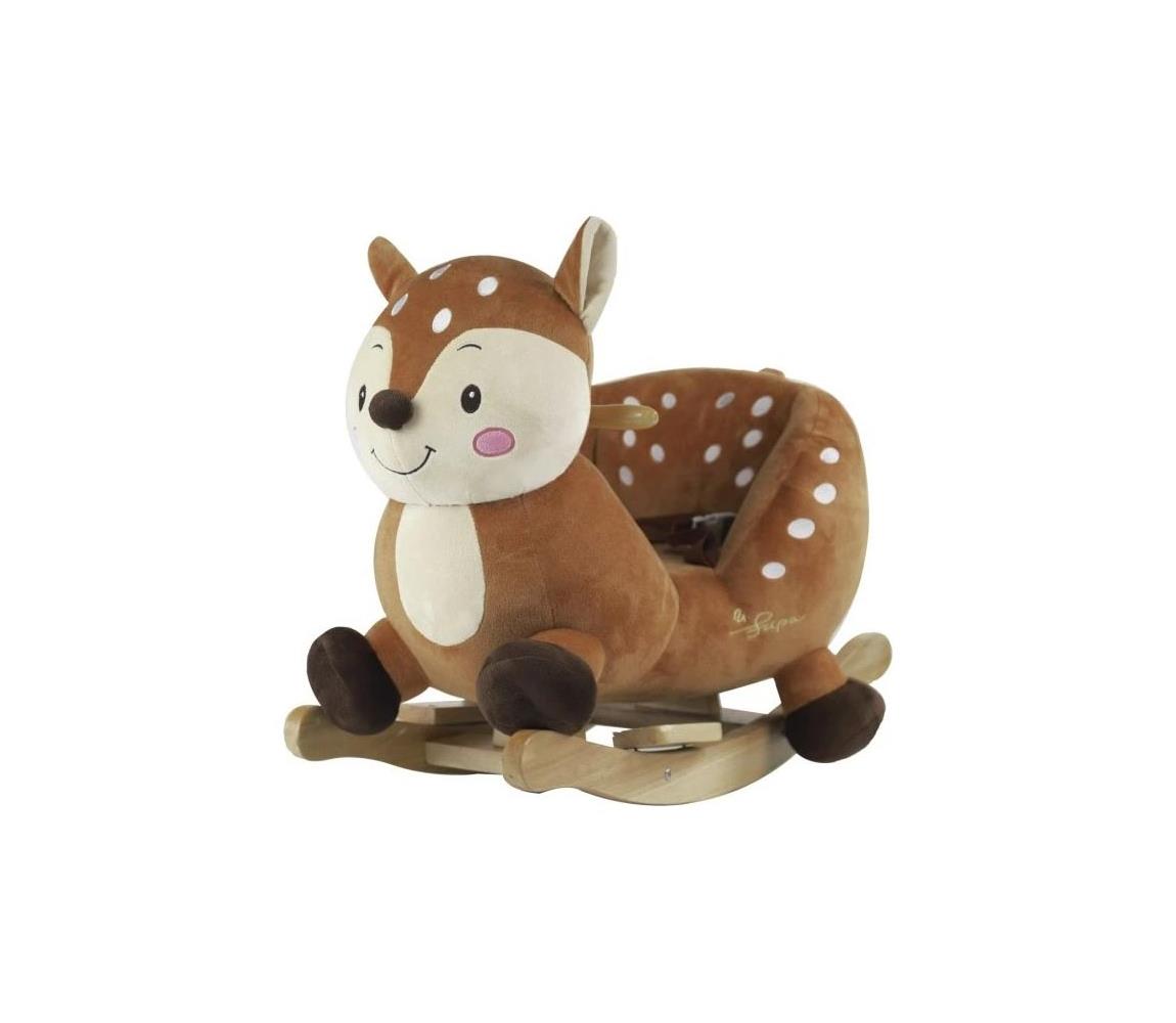 See armas kiikhobune kujutab endast vasikat, mis rõõmustab nii poisse kui tüdrukuid alates 9. elukuust. Pehme fliis ja tugev puidust raam toetavad motoorseid oskusi ning pakuvad ohutut ja lõbusat kiikumiskogemust. Kiikhobusel on pehme ja mugavalt polsterdatud iste turvavööga, mis tagab maksimaalse mugavuse ja kaitse ka kõige väiksematele lastele. Kiikumine arendab motoorikat, tasakaalu ja soodustab liikumisaktiivsust. Stabiilne massiivpuidust konstruktsioon on varustatud ümberpööramise kaitsega ning lapsed saavad hoida puidust käepidemetest kinni. Madala istme kõrgus võimaldab väikestel lastel turvaliselt istuda ja maha tulla. Puhastage niiske lapiga ja õrna seebiga. Ärge peske jooksva vee all ja laske loomulikult kuivada. Materjal: puit, polüester. Iste kõrgus: umbes 14 cm. Kandevõime: 26 kg.
