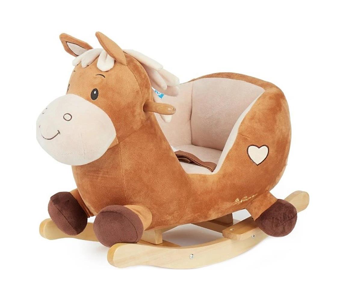 See armas kiikhobune rõõmustab nii poisse kui tüdrukuid alates 9. elukuust. Pehme fliis ja tugev puidust raam toetavad motoorseid oskusi ning pakuvad ohutut ja lõbusat kiikumiskogemust. Hobusel on pehme ja mugavalt polsterdatud iste turvavööga, mis tagab maksimaalse mugavuse ja kaitse ka kõige väiksematele lastele. Kiikumine arendab motoorikat, tasakaalu ja soodustab liikumisaktiivsust. Stabiilne massiivpuidust konstruktsioon on varustatud ümberpööramise kaitsega ning lapsed saavad hoida puidust käepidemetest. Madala istmekõrgusega on väikestel lastel lihtne turvaliselt istuda ja maha tulla. Puhastage niiske lapiga ja õrna seebiga. Ärge peske jooksva vee all ning laske loomulikult kuivada. Materjal: puit, polüester. Istemekõrgus: umbes 14 cm. Kandevõime: 26 kg.