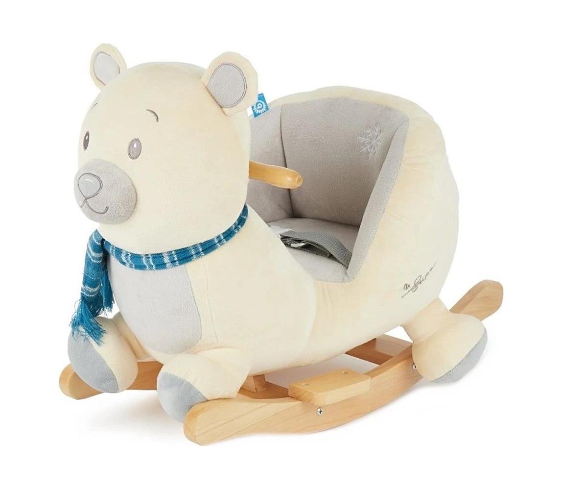 See armas kiikhobune jääkaru kujul rõõmustab nii poisse kui tüdrukuid alates 9. elukuust. Pehme fliis ja tugev puidust raam toetavad motoorseid oskusi ning pakuvad ohutut ja lõbusat kiikumiskogemust. Jääkarul on pehme ja mugavalt polsterdatud iste turvavööga, mis tagab maksimaalse mugavuse ja kaitse ka kõige väiksematele lastele. Kiikumine arendab motoorikat, tasakaalu ja soodustab liikumisaktiivsust. Stabiilne massiivpuidust konstruktsioon on varustatud ümberpööramise kaitsega ning lapsed saavad hoida puidust käepidemetest kinni. Madala istme kõrgus võimaldab väikestel lastel turvaliselt istuda ja maha tulla. Puhastage niiske lapiga ja õrna seebiga. Ärge peske jooksva vee all ja laske vabalt kuivada. Materjal: puit, polüester. Iste kõrgus: umbes 14 cm. Kandevõime: 26 kg.