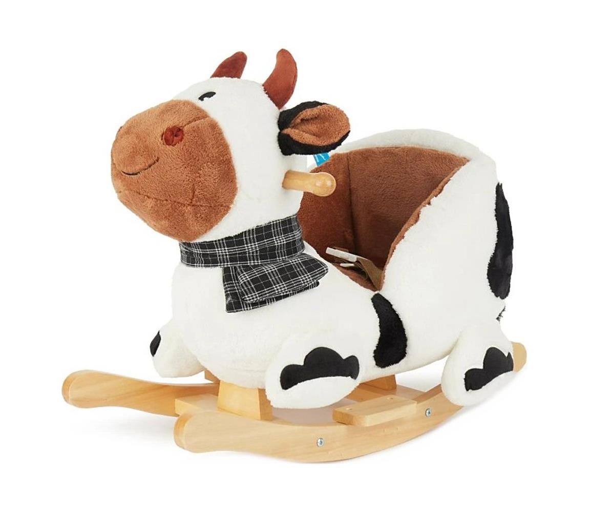 See armas kiikhobune lehmakujul rõõmustab nii poisse kui tüdrukuid alates 9. elukuust. Pehme fliis ja tugev puidust raam toetavad motoorseid oskusi ning pakuvad ohutut ja lõbusat kiikumiskogemust. Lehm on varustatud pehme ja mugava polsterdatud istmega turvavööga, mis tagab maksimaalse mugavuse ja kaitse ka kõige väiksematele lastele. Kiikumine arendab motoorikat, tasakaalu ja soodustab liikumisaktiivsust. Stabiilne massiivpuidust konstruktsioon on varustatud ümberpööramise kaitsega ning lapsed saavad hoida puidust käepidemetest kinni. Madal istme kõrgus võimaldab väikestel lastel turvaliselt istuda ja maha tulla. Puhastage niiske lapiga ja õrna seebiga. Ärge peske jooksva vee all ja laske vabalt kuivada. Materjal: puit, polüester. Istmepikkus: umbes 14 cm. Kandevõime: 26 kg.