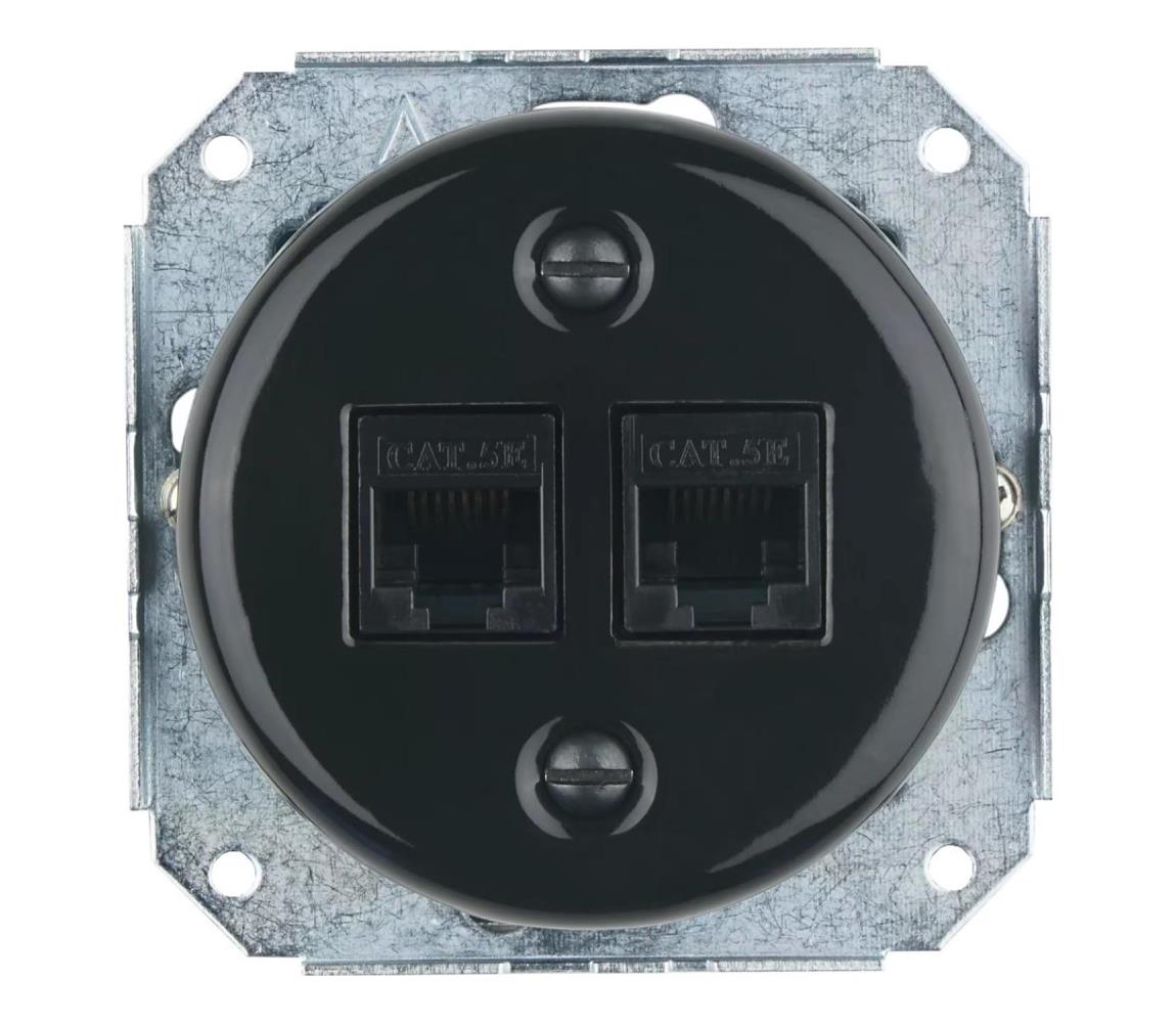 Portselanist Etherneti pistikupesa, 2x CAT5e, 2x RJ45. Retrostiilis disain köidab tähelepanu juba esimesel pilgul. Saate kombineerida pistikupesasid ja lüliteid või kasutada sama seeria mooduleid. Pesa on mõeldud kruvidega paigalduskarpi kinnitamiseks. Peene portselanpinnaga annab teie elektripaigaldisele maitseka ja elegantse ilme. Mõeldud standardsetesse KU68 karpidesse.