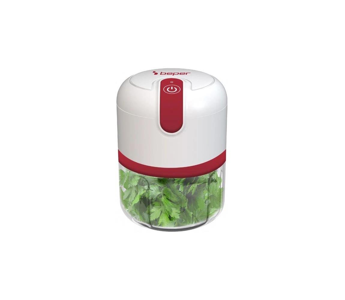 Laetav mini-toiduhakkija valge-punases viimistluses.Ideaalne köögiviljade, puuviljade, liha ja maitsetaimede hakkimiseks.Traadita töö kuni 20 kasutuskorda ühe laadimisega.Lihtne ühe nupuga juhtimine.Pulsifunktsioon.250 ml plastist tükeldamisnõu.3 roostevabast terasest tera ühtlaseks hakitsemiseks.Eemaldatavad osad lihtsaks puhastamiseks.Laadimine USB-kaabli abil (kaabel komplektis).Aku: integreeritud Li-Ion 1 500 mAh.