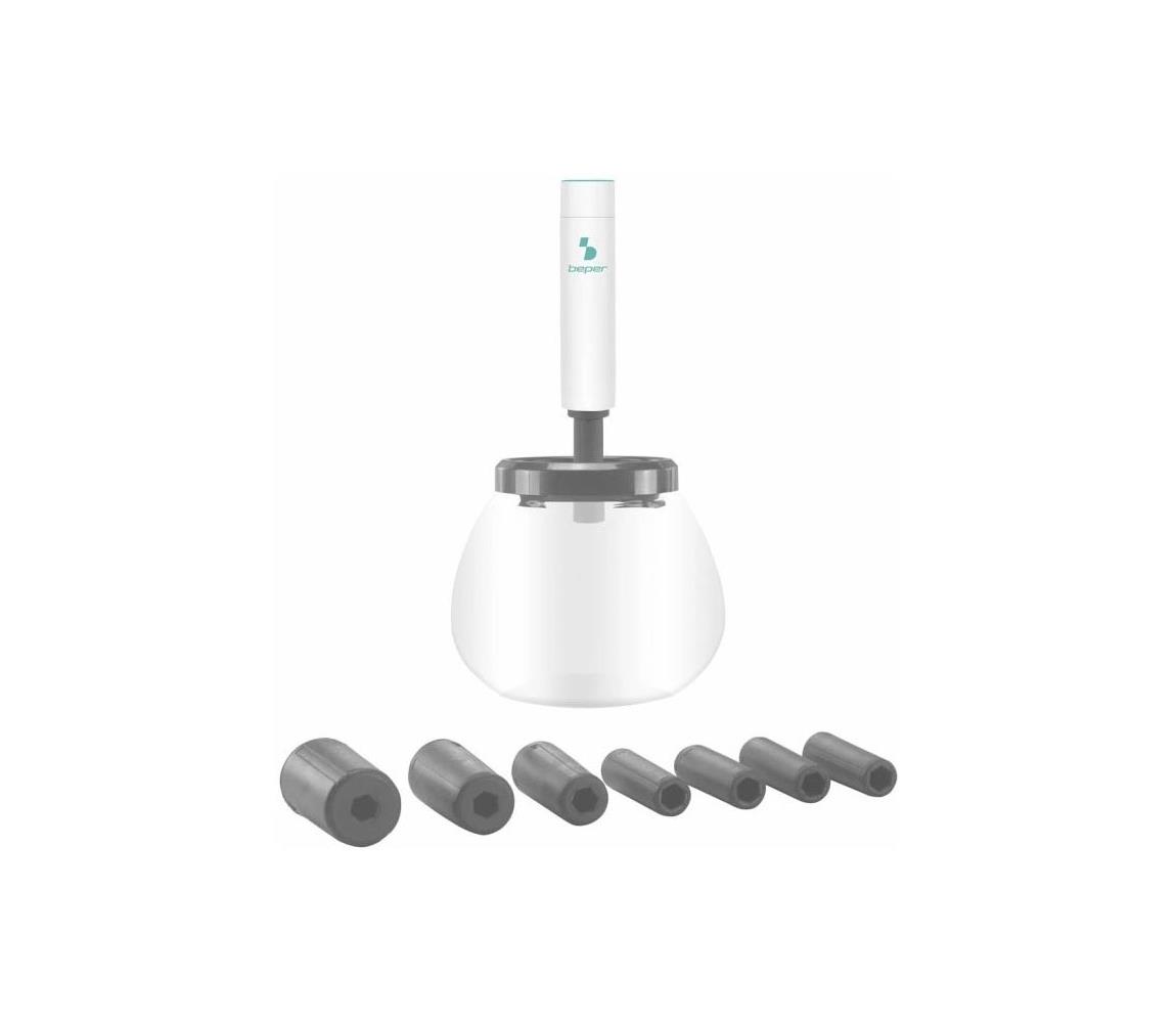 BEPER automaatne meigipintslite puhasti pakub lihtsat ja kiiret lahendust pintslite põhjalikuks puhastamiseks. Kiire pöörlemine plastikust PET-anumas võimaldab harjaste põhjalikku puhastamist ilma neid kahjustamata. Meigijääkide eemaldamine muudab pintslid esteetilisemaks ning aitab hoida naha puhtana ja tervena. Komplekt sisaldab 7 erinevat silikoonotsikut pintslitele läbimõõduga 5–24 mm. Seadme töö tagavad 2 AAA-patareid, mis ei kuulu komplekti. Puhasti vähendab oluliselt käsitsi puhastamiseks kuluvat aega ja vaeva.