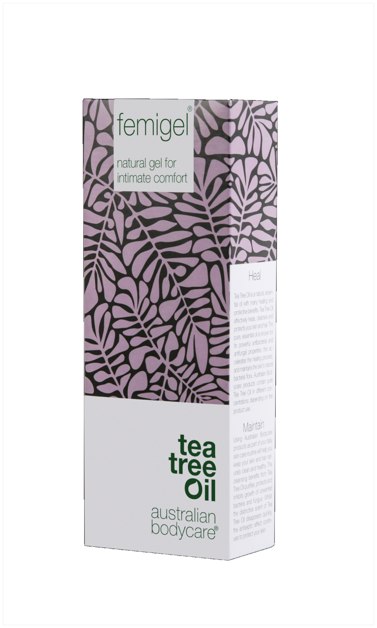 FEMIGEL sisaldab optimaalses kontsentratsioonis 2,7% looduslikku Australian Bodycare® teepuuõli (Melaleuca alternifolia). Teepuuõli antiseptilised omadused pärsivad bakterite, seente ja pärmseente paljunemist ning toetavad intiimpiirkonna loomulikku mikrofloorat.Femigel pakub kauakestvat niisutust, aitab säilitada normaalset pH tasakaalu ning leevendada intiimpiirkonna kuivust, sügelust, ärritust ja ebamugavustunnet. Nimetatud sümptomeid võivad põhjustada stress, antibiootikumid ning erinevad seebid ja kreemid. Sageli esineb intiimpiirkonna vaevuseid üleminekuperioodil. Femigel on värvitu hormoonivaba geel, mis ei määri ega põhjusta ärritust. Hoiatused: Toodet ei ole soovitatav kasutada raseduse ja menstruatsiooni ajal. Mitte kasutada allergiliste reaktsioonide ilmnemisel.