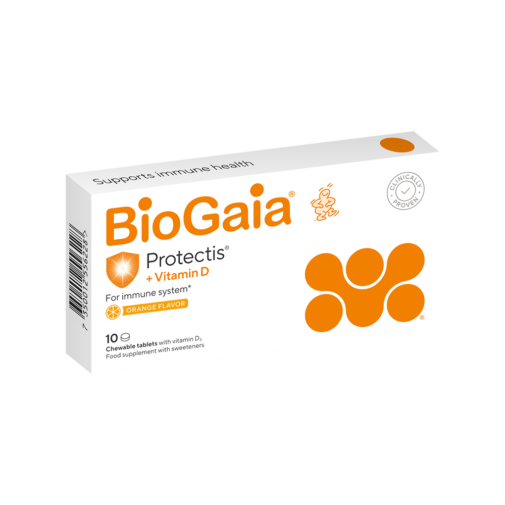 BioGaia Protectis on toidulisand. Apelsinimaitselised probiootilised närimistabletid sisaldavad 10 mcg vitamiini D3 ja patenteeritud piimhappe bakterit Limosilalactobacillus reuteri Protectis®/TM (L.reuteri DSM 17938), mis aitab headel bakteritel hoida seedetraktis loomulikku tasakaalu. L.reuteri Protectis’t on testitud rohkem kui 150 kliinilises uuringus ning selle ohutus ja efektiivsus on tõestatud.