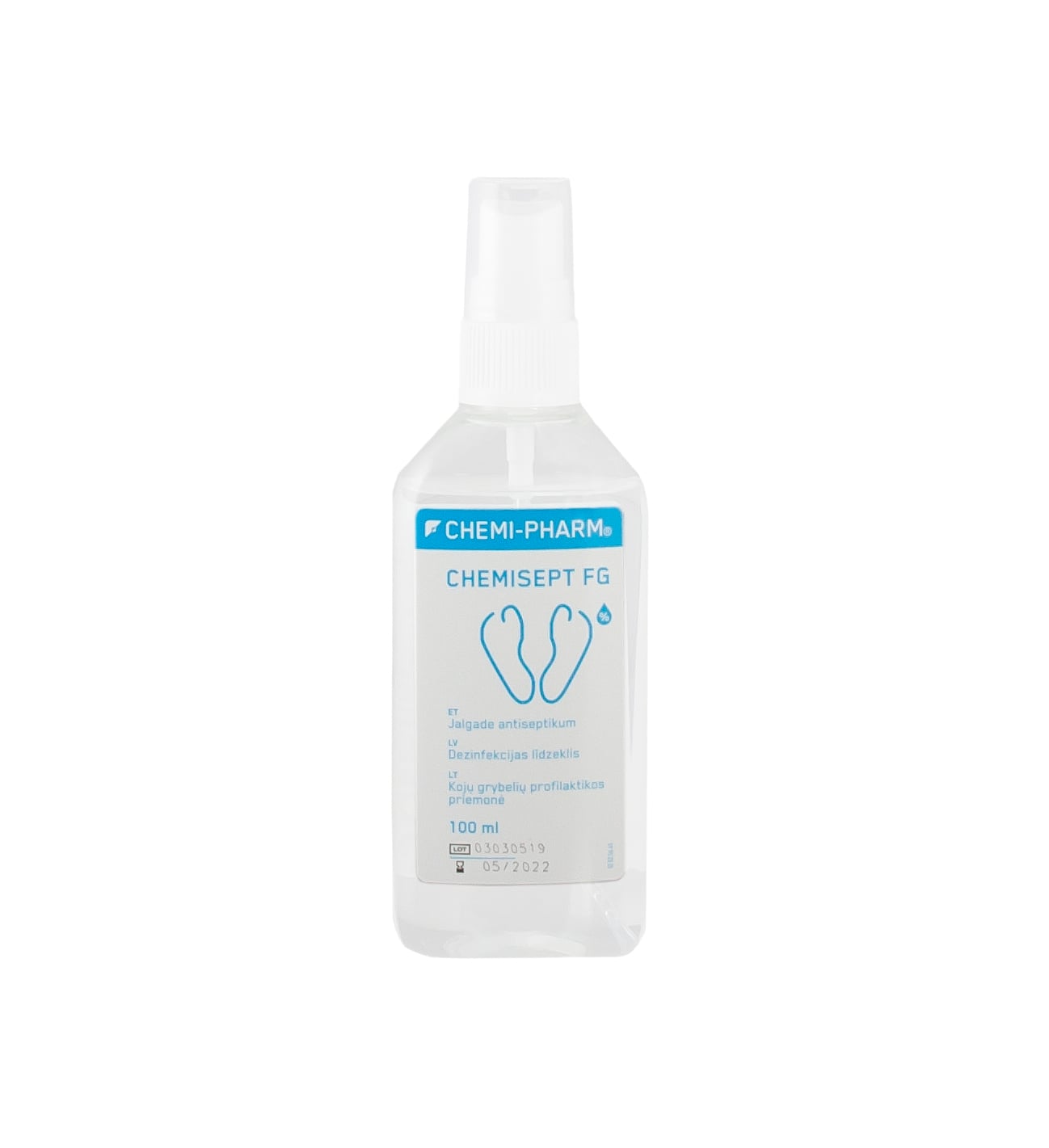 CHEMISEPT FG on piparmündilõhnaline vahend jalgade antiseptikaks. Toode on laia fungitsiidse ja bakteritsiidse toimega, hävitab Gram-negatiivseid ja Gram-positiivseid baktereid ning viiruseid.