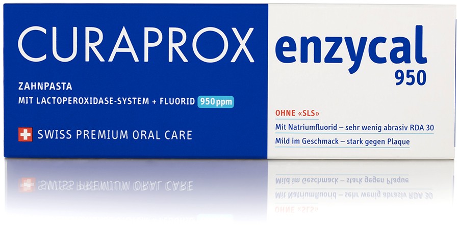 Curaprox Enzycal hambapasta 75ml LACTOPEROXIDASE süsteem: ensüümid tugevdavad sülje kaitsvaid ja hambakatu teket pidurdavaid omadusi. Ei sisalda naatriumlaurüülsulfaati (SLS), hoiab ära agressiivsete tensiidide poolt tekitatud aftide tekke suu limaskestal. Kaariesevastane tänu ensüümide ja fluori koostoimele.