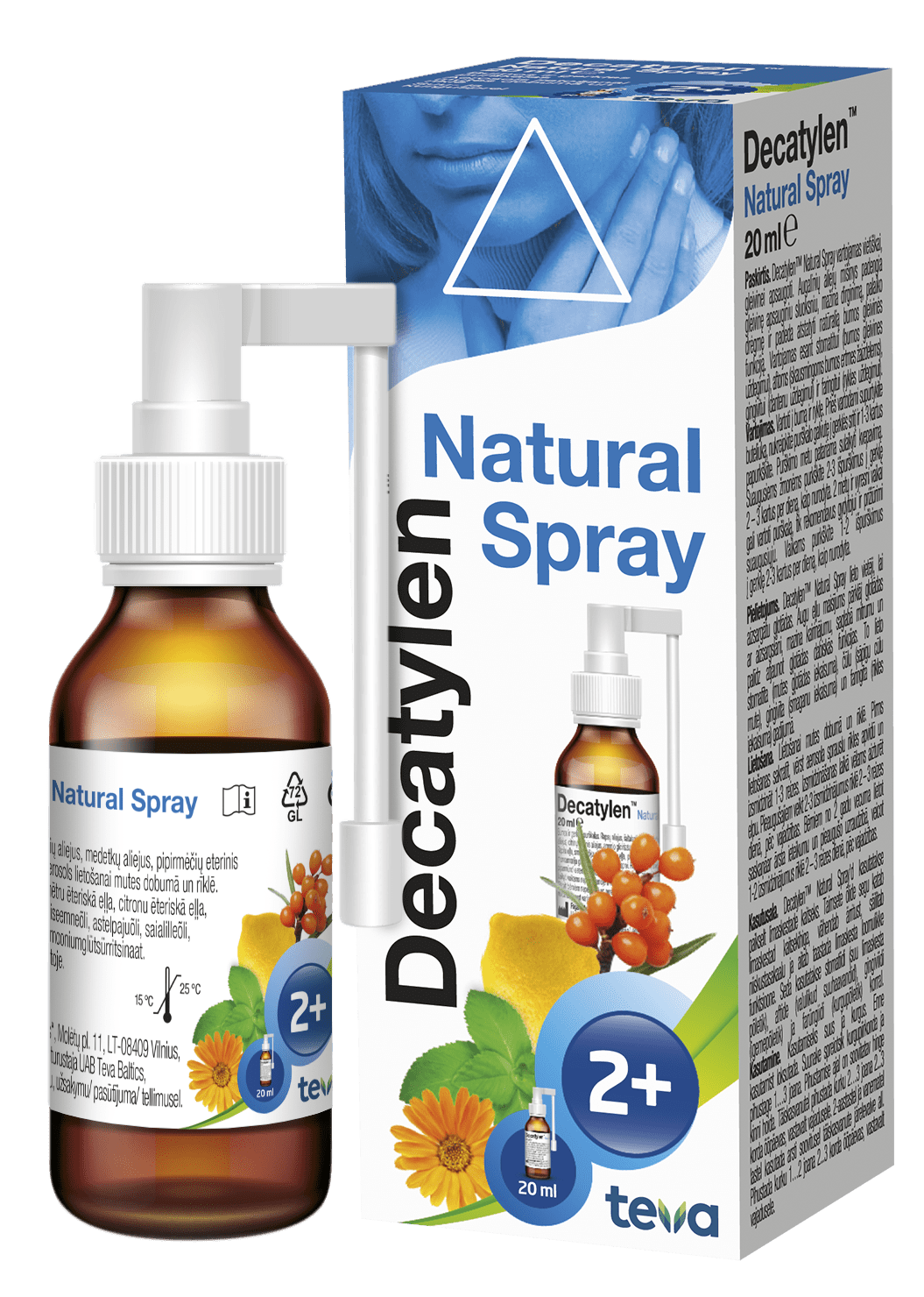 DecatylenTM Natural Spray`d kasutatakse paikselt limaskestade kaitseks ning abistava vahendina suu ja kurgu põletikust tingitud sümptomite leevendamisel. Taimsete õlide segu katab limaskestad kaitsekihiga, vähendab ärritust, säilitab niiskustasakaalu ja aitab taastada limaskesta loomulikke funktsioone. Seda kasutatakse stomatiidi (suu limaskesta põletik), aftide (valulikud suuhaavandid), gingiviidi (igemepõletik) ja farüngiidi (kurgupõletik) korral.