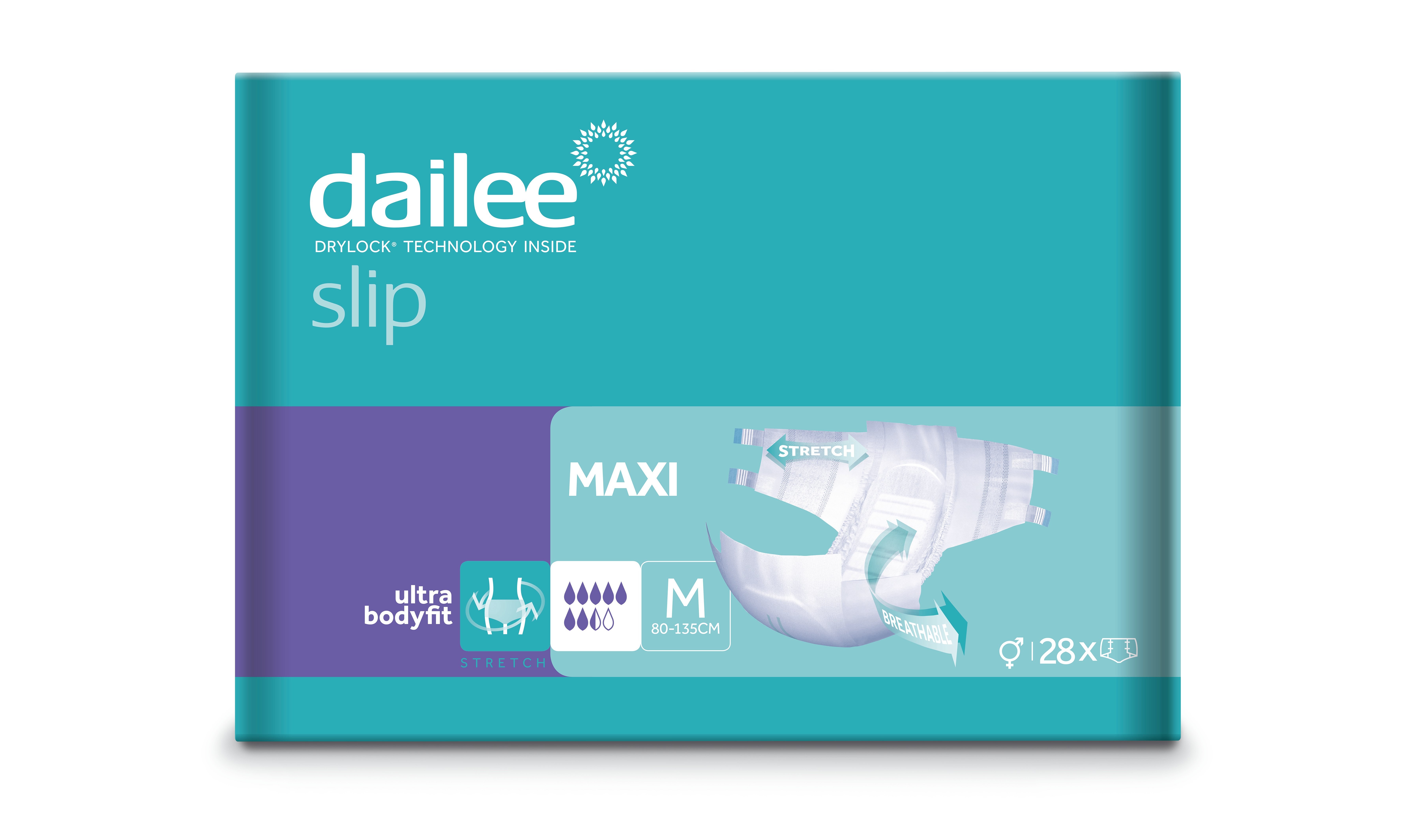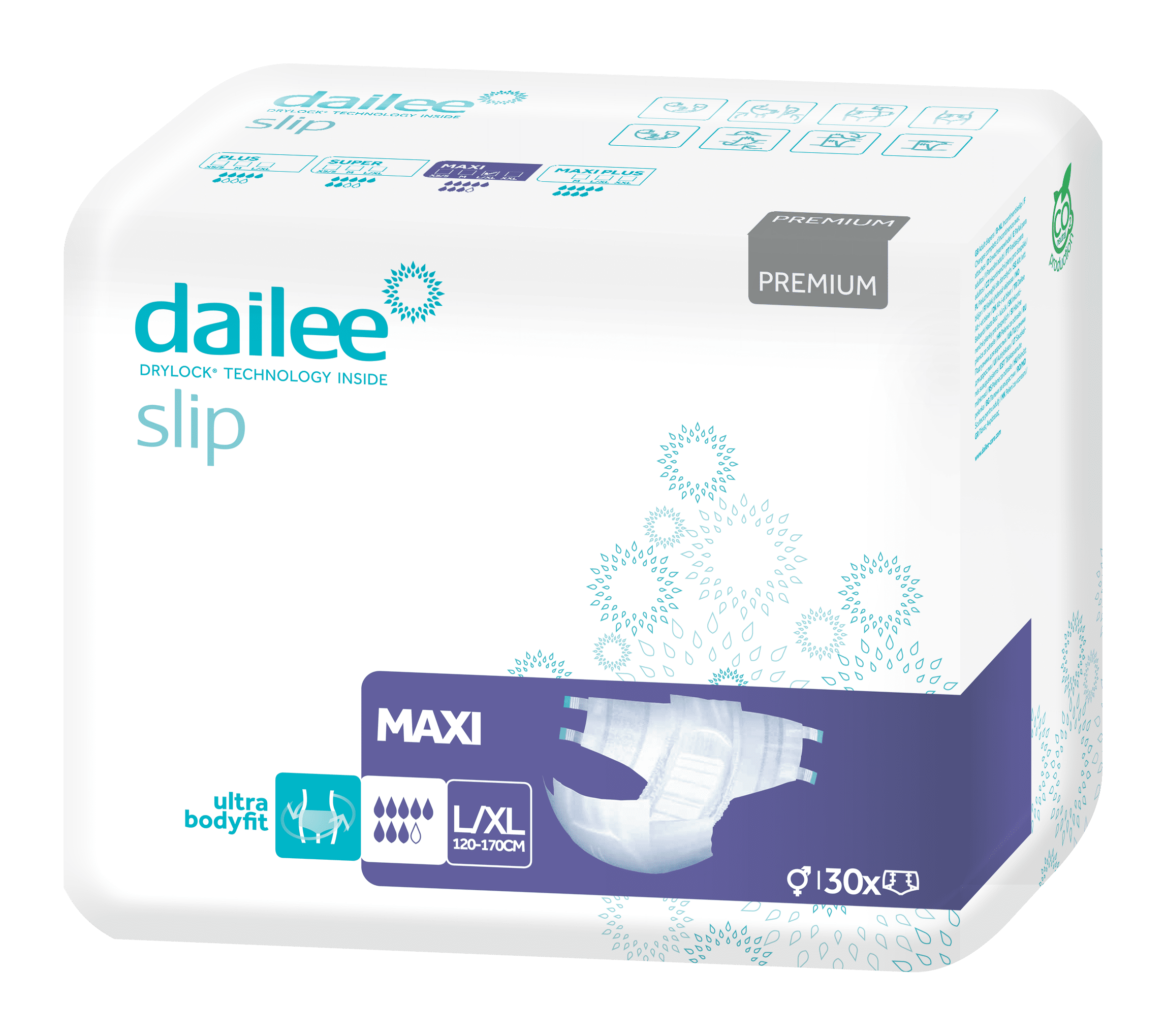 Anatoomilise kujuga täiskasvanute mähkmed (anatoomiline esiosa, tagaosa (kattes tuharaid) ja imav südamik) keskmise kuni raske uriinipidamatusega inimestele (uriini- ja roojapidamatus) Toode on mõeldud nii naistele kui ka meestele, nii istuvale kui ka magavale inimesele. Täielikult hingavad ja vastupidavad mähkmematerjalid kaitsevad ja edendavad naha tervist ja mugavust Nimmepiirkonnas on mitu elastset sisetükki, mis sobivad erinevatele suurustele Topelt lekketõkked kogu imava osa pikkuses aitavad tagada parima jõudluse Aktiivne lõhnakontrollisüsteem – kuni 12 tundi 3-tasemeline imav osa Ultra Dry süsteem (superimav + tselluloos) koos perforeeritud vedeliku jaotussüsteemiga kiiremaks imendumiseks, mis tagab kuiva pinna Laiad mitmeotstarbelised kleebised (võib peale kanda rohkem kui 3 korda) Puusapoolne materjal on valmistatud tugevast kahekordsest lausriidest Dermatoloogiliselt testitud laboritingimustes vastavalt standardile ISO 10993 Skin Health Alliance'i silt Mugav kahekordne niiskusindikaator Lihtne valik värvikoodi abil, mis näitab toote imamisvõime taset Toote suurus on pakendil selgelt trükitud, et seda oleks lihtsam tuvastada SILKY SOFT tehnoloogia - DAILEE on valmistatud pehmest kangast, mis hellitab nahka. Silky Soft ja Ultra soft suurendavad mugavust ja meeldivat puudutust Toodetud ISO13485 ja PEFC sertifikaadiga tehases, kasutades 100% ECOpower – EKO Energie Environmental sertifikaat STANDARD 100 OEKO-TEXilt „valmistatud roheliselt” CO₂-neutraalne tootmise ökomärgis EKOVADIS PLATINUM märgis