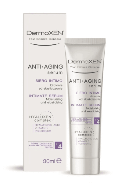 Innovatiivne intiimhooldus, mis on loodud välise intiimpiirkonna sügavaks niisutamiseks, andes toonust ja elastsust ning matkides loomulikku intiimset niisutust. Ainulaadse Hyaluxen kompleksiga Anti-Aging intiimseerum:• süvaniisutab ning taastab naha niiskustaseme, elastsuse ja toonuse.• sobilik kasutamiseks tupekuivusega seotud sügeluse ja kuivuse korral.• tänu limalaadsele koostisele jäljendab loomuliku määrimist.• kaitseb mikrobiootat luues kaitsebarjääri kontaktärrituse eest.• ainulaadne kontsentreeritud koostis.See on eriline, sest sisaldab unikaalset HYALUXEN KOMPLEKSI, mis on postbiootikumil põhinev sügava vananemisvastase toimega uue põlvkonna lahendus.Koostises on:- hüaluroonhape (kõrge ja madala molekulmassiga) hoiab naha niiskustaset, muutes limaskesta pehmeks ja parandades naha elastsust, toonuse kaotuse ja vananemise vastu;- ektoiin kaitseb naharakke osmootse stressi eest, säilitab naha kõrge niiskustaseme, toetades naha ja tupe mikrobioota tervist. Võimendab hüaluroonhappe niisutavat toimet ning parandab kollageeni tootmist;- E-vitamiin toidab nahka ja toimib antioksüdantina;- pantenool niisutab, rahustab ja kaitseb;- piimhape taastab füsioloogilise pH taseme;- bisabolool ja Centella Asiatica ekstrakt pehmendab ja rahustab sügelust ja kuivustunnet.Soovitatav ka vahekorra ajal ja lahkliha massaažiks. Veepõhine geel. Ei jäta jääke, ei ole rasvane ja ei määri. Säilitusainetevaba. Testitud günekoloogilise kontrolli all.