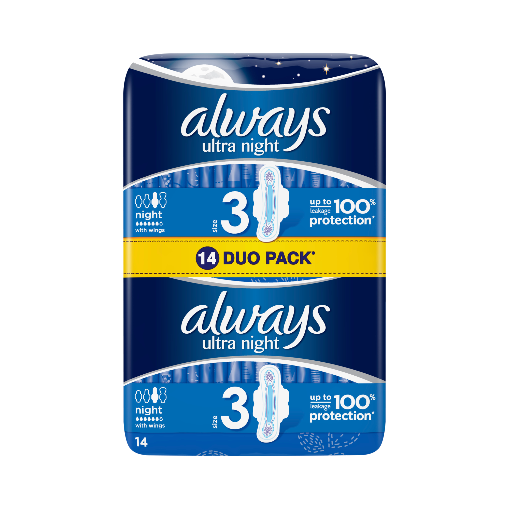 Ära lepi vähemaga kui ALWAYS Ultra Super Extra (suurus 3) hügieenisidemete kolmekordne kaitse. Tänu InstantDry tehnoloogiale imavad õrna pealiskihiga Alwaysi sidemed vedeliku hetkega ning LeakGuardi ja OdourLocki tehnoloogiad aitavad vältida lekkeid ning ebameeldivate lõhnade teket. Selle ainulaadsed ComfortLocki tiivakesed on loodud sobima paremini igat tüüpi aluspesuga. Öiseks lisakaitseks proovi eri suuruses saadavaid hügieenisidemeid Always Night. Always Ultra hügieenisidemed on saanud nahatervise organisatsiooni Skin Health Alliance dermatoloogilise heakskiidu.