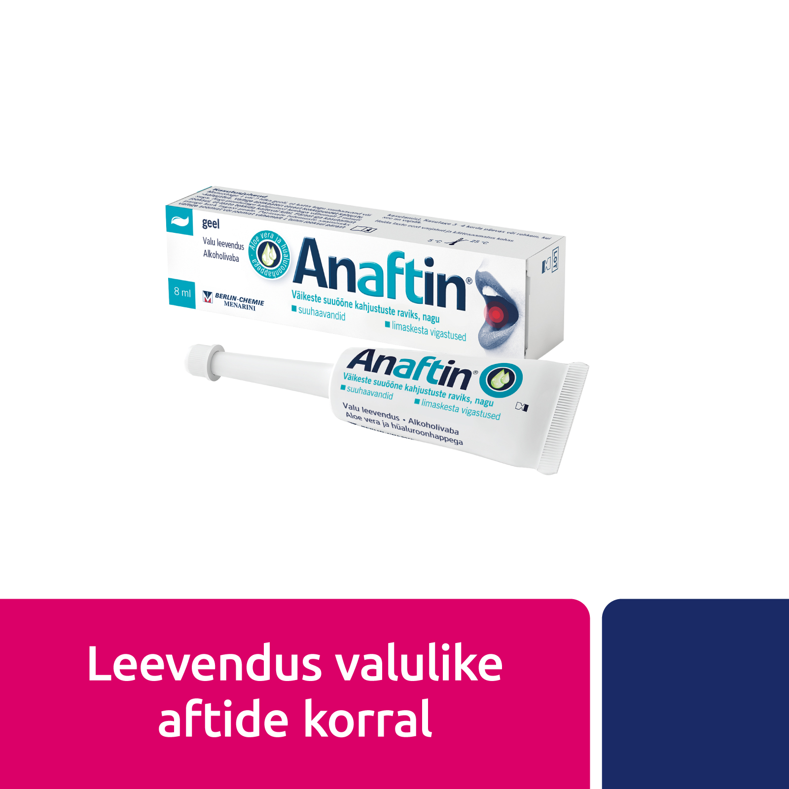 Anaftin® geel aitab leevendada valu, mille põhjuseks on väikesed suuõõne kahjustused, mida põhjustavad aftoosne stomatiit, aftoossed haavandid, samuti breketid ja halvasti istuvad proteesid. Samuti on see näidustatud difuussete aftoossete haavandite korral.Anaftin® geel sisaldab polüvinüülpürrolidooni (PVP) ja hüaluroonhapet, mis suuõõnele kinnitudes moodustavad kaitsva kile, tekitades kahjustunud piirkondadele mehaanilise barjääri, leevendades sellega valu, mida põhjustavad paljastunud närvilõpmed. Koostisse kuuluvad hüaluroonhape ja Aloe vera toetavad kahjustatud kudede loomulikku paranemist. Hoiatused: Üht Anaftin® geeli tuubi tohib kasutada ainult üks patsient, et vältida aplikaatori ja geeli ristsaastumist. Anaftin® geeli kasutamine on vastunäidustatud patsientidel, kellel on varem esinenud ülitundlikkus toote ükskõik millise koostisosa suhtes. Kui olete rase, küsige arstilt nõu enne toote kasutamist. Kui teil esinevad sageli suuhaavandid, soovitatakse pöörduda arsti poole.