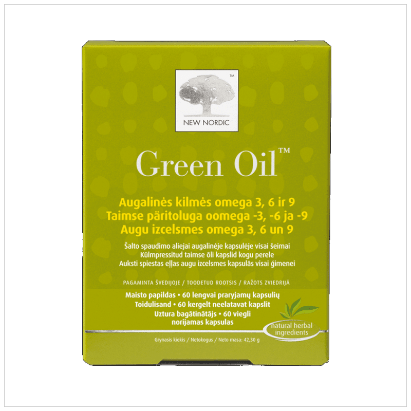 Green Oil on taimne looduslike rasvhapete kombinatsioon, mida saadakse lina-, rapsi- ja kuningakepiseemnetest. Green Oili kapslid on toodetud taimse tooraine külmpressimise meetodil, tänu sellele on kõik bioloogiliselt aktiivsed ained säilinud. Preparaadi koostisesse kuuluvad organismile vajalikud asendamatud oomega-3-, -6- ja -9-rasvhapped. Green Oili kapslid sobivad tarvitamiseks ka taimetoitlastele. Green Oil on hästi tasakaalustatud oomega-3-, -6- ja -9-rasvhapete kombinatsioon kogu perele. Green Oili kapslitel puudub kalamaitse ja -lõhn!