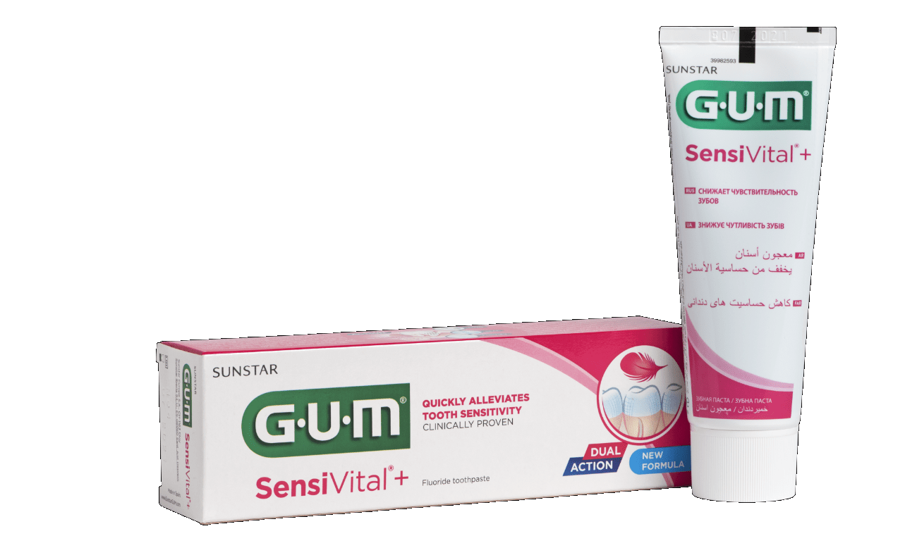 GUM SensiVital+ hambapasta on mõeldud kasutamiseks, kui tunnete külma, kuuma, happelist või magusat süües või juues, hambaid pestes või külma õhku sisse hingates hambavalu. Hambapasta tagab kiire ja kauakestva kaitse hammaste tundlikkuse vastu, moodustades hammastele kaitsva ja tundlikkust vähendava kihi. See ennetab tänu fluoriidi, isomalti ja apelsinikoorest saadud naturaalse toimeaine patenteeritud kombinatsioonile hambaauke ja juurekaariest. Hambakatuvastane toime. Meeldiv piparmündimaitse. Hoiatused: Hoida lastele kättesaamatus kohas! GUM sari on mõeldud kasutamiseks ainult suuõõnes! Mitte kasutada pärast kõlblikkusaja lõppu!Mitte kasutada, kui olete mõne toote koostisaine suhtes ülitundlik!Mitte kasutada, kui tootepakend on kahjustatud!