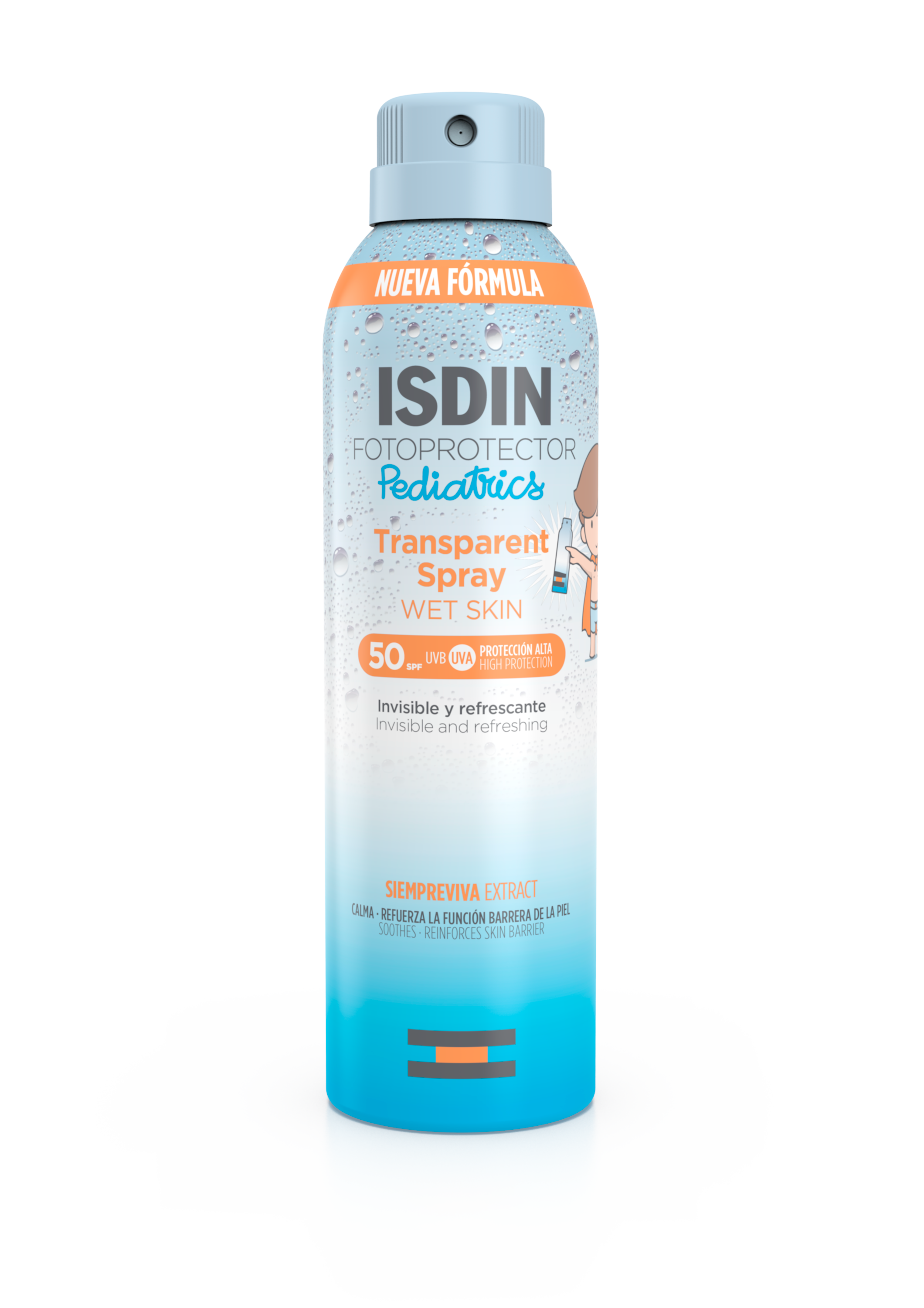 ISDIN FOTOPROTECTOR Pediatrics Transparent Spray Wet Skin 50 SPF UVB UVA KÕRGE KAITSETASE Nähtamatu ja värskendav RAHUSTAB – TUGEVDAB NAHABARJÄÄRI Värske ja kerge läbipaistev päikesekaitsesprei lastele. Sisaldab AHTALEHISE KÄOKULLA ekstrakti. See on looduslikku päritolu aine, mis aitab rahustada nahka ning parandab ja tugevdab naha loomulikku kaitsevõimet. Sisaldab antioksüdandist E-vitamiini ja pantenooli, mis niisutavad tugevalt nahka, ergutades naha loomulikku taastumist pärast päikese käes olemist. Lastele alates 6. elukuust. Väga veekindel. Hõõrumiskindel. Imendub ja kuivab hetkega. Ei sisalda mineraalõlisid. Sobib atoopiale kalduvale ja tundlikule nahale. Pediaatriliselt ja dermatoloogiliselt testitud. Hüpoallergeeniline: välja töötatud allergiariskide minimeerimiseks.