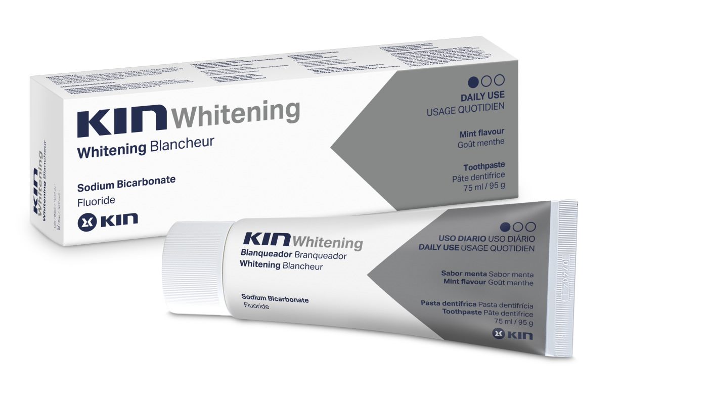 KIN Whitening hambapastas olevad aktiivsed toimeained on mikropeened naatriumvesinikkarbonaadi osakesed, mis valgendavad hambaemaili seda kahjustamata. Naatriumpürofosfaat väldib katu ja hambakivi teket ning naatriumfluoriid, mis kaitseb kaariese eest. Hambapasta koostises on kristalne naatriumvesinikkarbonaat e. söögisooda (sodium bicarbonate) mikropulber, mis on pehmem kui hambaemail ja dentiin ning seetõttu eemaldab hambaemaililt efektiivselt nii plekke kui sinna kogunenud kogunenud katu. Hambad muutuvad heledamaks, taastub naturaalne toon ja välditakse edasist hammaste värvumist toidu, jookide või tubaka toimel. Hambapasta on võrreldes lubatud ülempiiri abrasiivsusega RDA 250, madala abrasiivsusega RDA 87. Naatriumvesinikkarbonaadi sisaldus pastas on 15%, seega sobib kasutamiseks ka peale hammaste valgendusprotseduure, et säilitada särav naeratus. Naatriumvesinikkarbonaat neutraliseerib efektiivselt happeid, mida toodavad hambakatus olevad bakterid ja vähendab suus halba lõhna. Kuna aine on vees lahustuv, siis pääseb ta hästi hambavahedesse ja pinnakonarustesse, kuhu teised ained ei pääse. Kristalne naatriumpürofosfaat (sodium pyrophosphate) ennetab hambakatu ja -kivi teket reageerides suus oleva kaltsiumfosfaadiga, mis ei ole veel hammastele ladestunud. Tekkinud uus ühend on vees lahustuv, seega hambakivi põhjustav kaltsiumfosfaat eemaldatakse veega loputades. Naatriumpürofosfaadi sisaldus hambapastas on 3,3%. Naatriumfluoriid remineraliseerib hambaid, aitab taastada hambavaapa ja pidurdab suhkrute muutumist emaili kahjustavateks hapeteks.