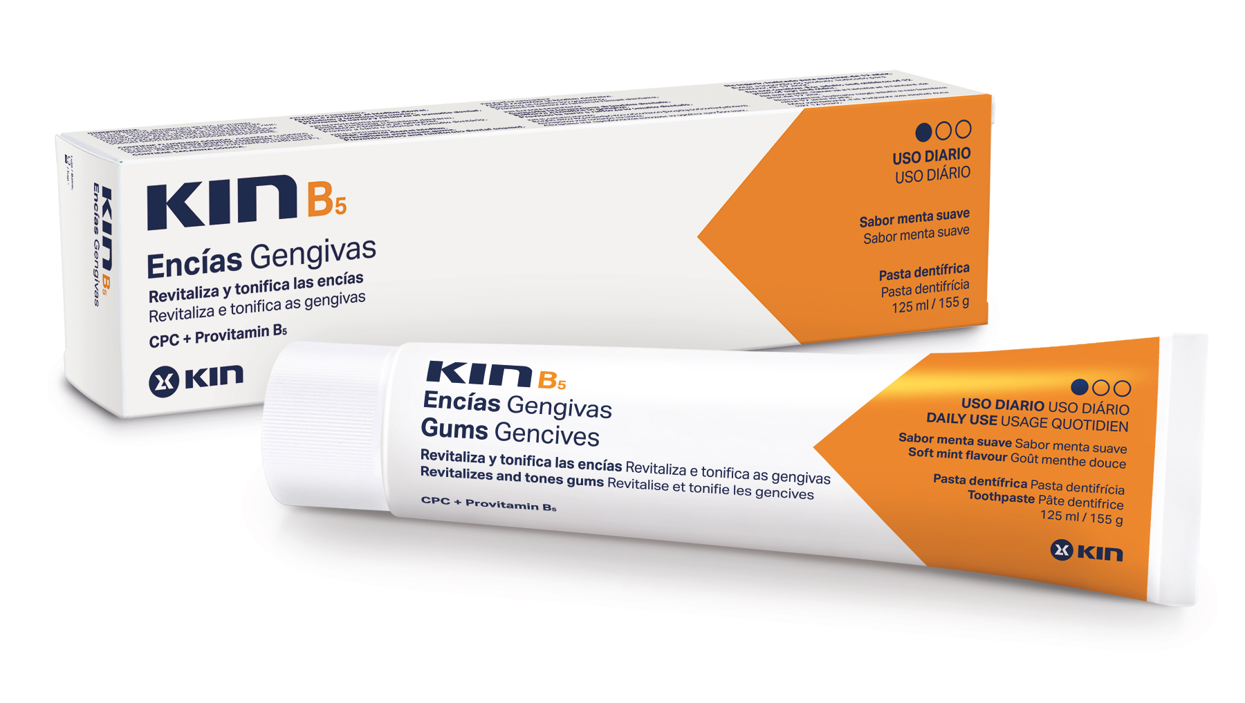 Hambapasta KIN B5, 125 ml. Antiseptiline ja hambakattu kontrolli all hoidev ning suu limaskesta taastav ja tugevdav hambapasta kasutamiseks liigse katu korral ja pärast hambakivi ja -katu eemaldamist. Ideaalne tundlike igemetega patsientidele (diabeetikud, rasedad, suitsetajad, implantaatide ja proteeside kandjad, suukaudsete antikoagulantide ravil olijad jne). Meeldiva maitsega, läbipaistev ja sobib pikaajaliseks igapäevaseks kasutamiseks täiskasvanutele ning lastele alates 12 eluaastast. Koostises CPC 0,05%, vitamiin B5 ja B3, tsink, floriid 1450ppm, ksülitool 10%. Ideaalne kasutamiseks koos KIN B5 suuveega.