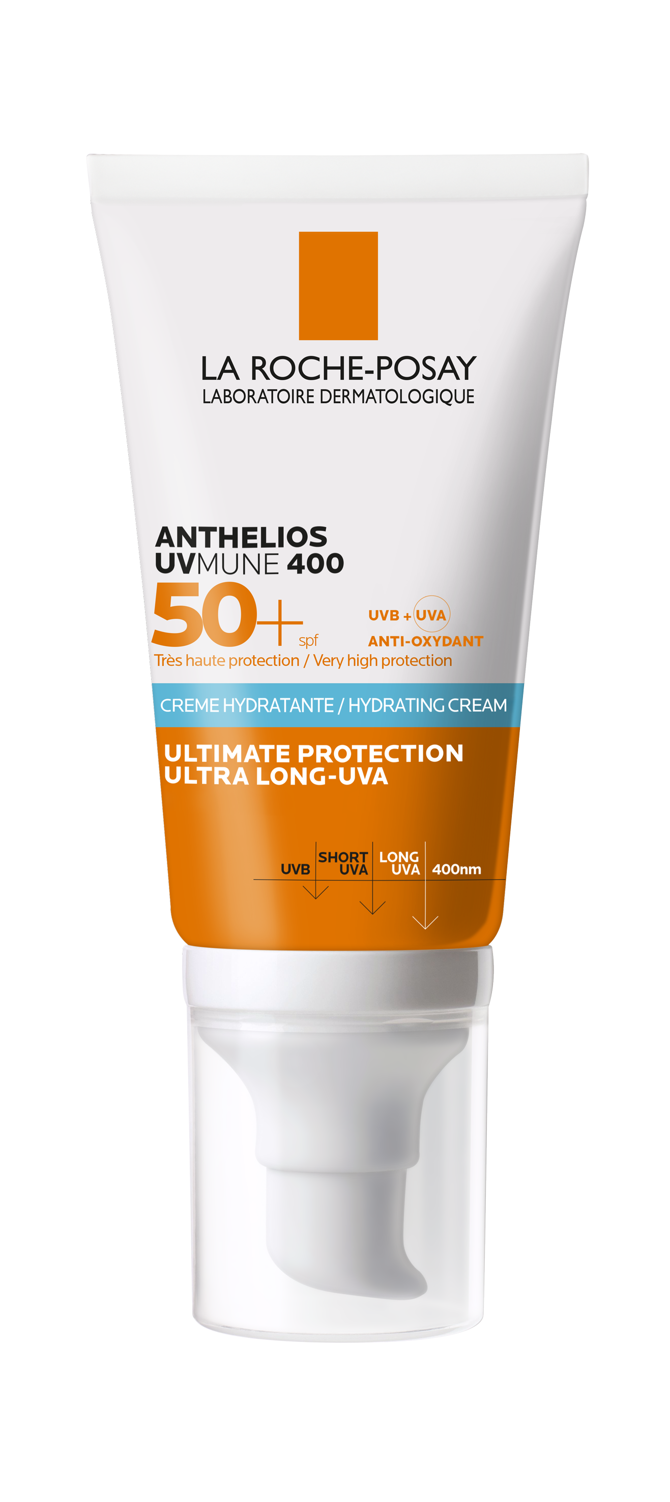 ANTHELIOS UVMUNE 400 HYDRATING CREAM SPF 50+. *PÖÖRDELINE FOTOKAITSE. KÕIGE TÕHUSAM UV-FILTER MEXORYL 400 PAKUB KAITSET KA KÕIGE OHTLIKUMATE UV-KIIRTE VASTU (340–400 nm = pikalaineline UVA-kiirgus, 380–400 nm = ülipikalaineline UVA-kiirgus).Väga tugev kaitse UVA- ja UVB-kiirguse eest. Aitab ennetada infrapunakiirgusest ja õhusaastest tingitud oksüdatiivset stressi. Vee- ja higistamiskindel. Ei jäta valgeid jälgi. Ei ole lõhnastatud. Tundlikule ja päikese mõjul ärrituvale nahale. Dermatoloogiliselt kontrollitud. Loodud silmade ärrituse vähendamiseks.