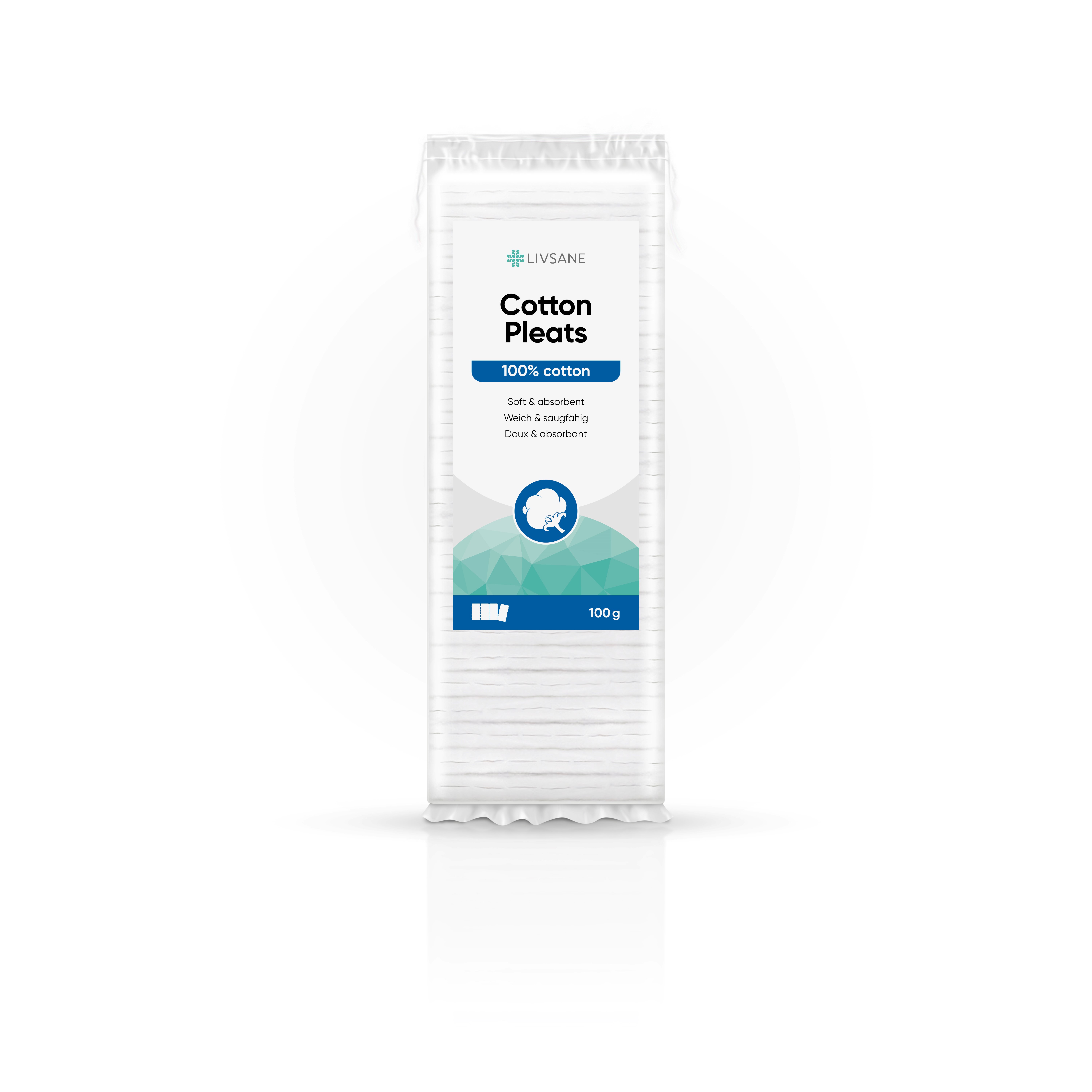 LIVSANE puuvillane vatt on pehme ja käepärane. Kõrge imavusega vatt on jaotatud praktilisteks osadeks. Tehtud 100% puuvillast, pleegitatud hapnikuga. Sobib igale nahatüübile. Ideaalne igapäevaseks kosmeetiliseks ning hügieeniliseks näo- ja kehahoolduseks. Hoiatused: Lämbumisoht! Hoida lastele kättesaamatus kohas!Mitte visata WC potti!