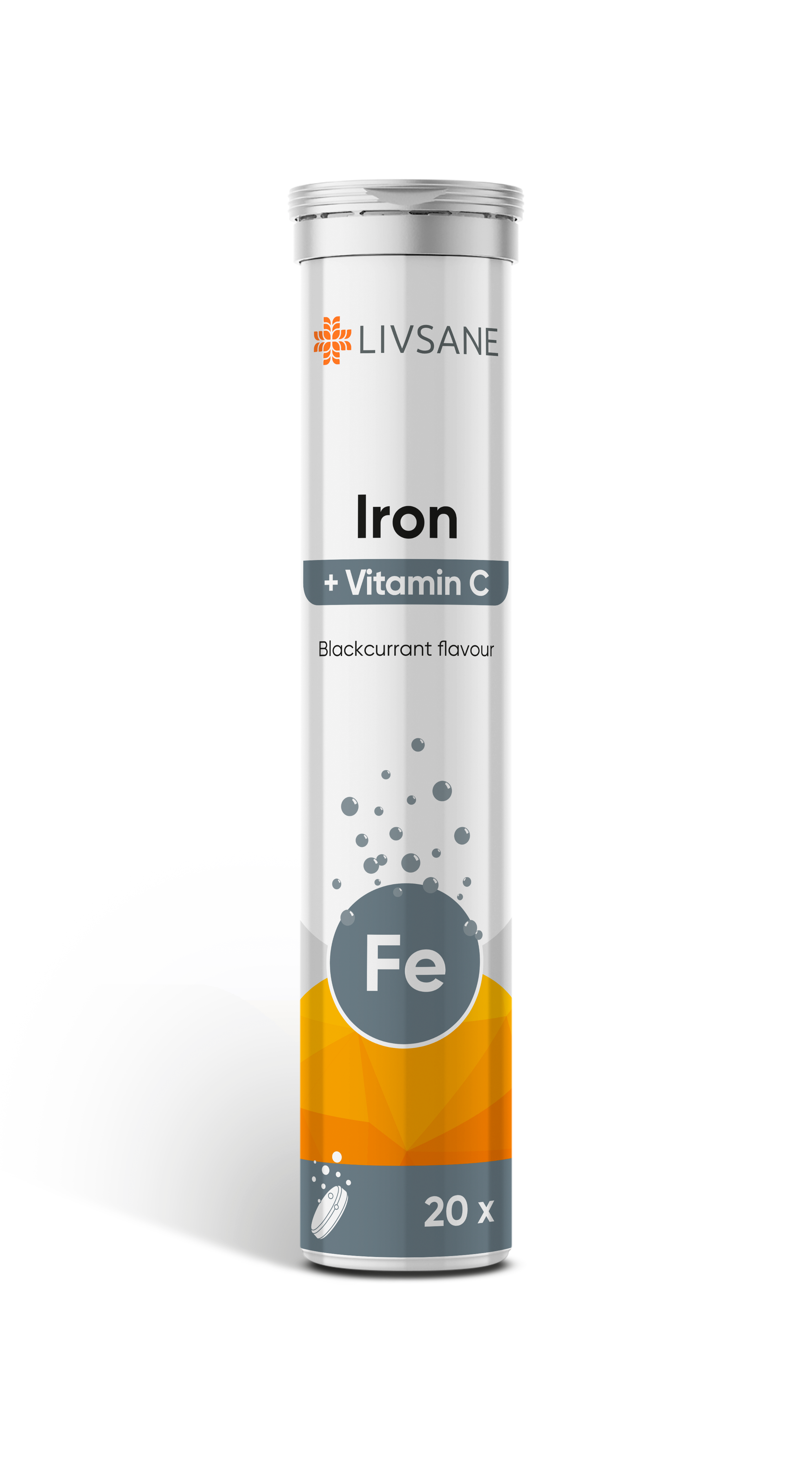 LIVSANE lahustuvad tabletid sisaldavad rauda ja C-vitamiini. Inimkeha efektiivseks tööks on vaja organismi pidevalt varustada rauaga. Raua ebapiisav tarbimine võib väljenduda mitmel erineval moel, näiteks kontsentratsioonivõime ajutises langemises või väsimuses. Raud on eriti oluline rasedatele ja rinnaga toitvatele naistele, naistele menstruatsiooni ajal, dieeti pidavatele inimestele ja sportlastele. Raud aitab kaasa normaalsele energiavahetusele, hapniku transpordile kehas ja toetab vere punaliblede moodustumist. Vitamiin C suurendab raua imendumist ja aitab vähendada väsimust ja kurnatust. Lahustuvad tabletid on meeldiva mustsõstra maitsega. Hoiatused: Oluline on toituda mitmekülgselt ja tasakaalustatult ning harrastada tervislikku elustiili! Mitte ületada päevaseks tarbimiseks soovitatavat kogust! Toidulisandit mitte kasutada mitmekesise toitumise asendajana! Hoida toodet lastele kättesaamatus kohas!