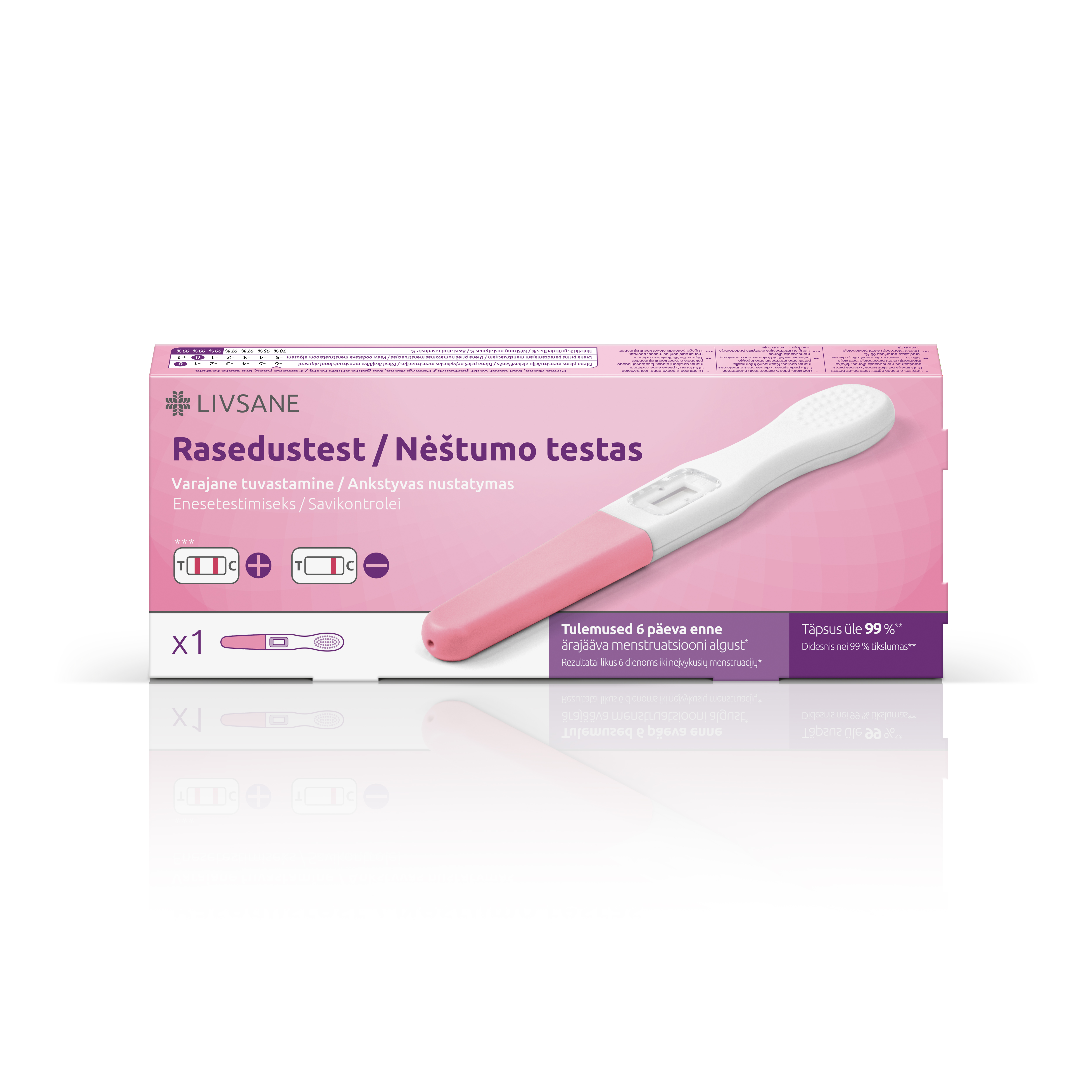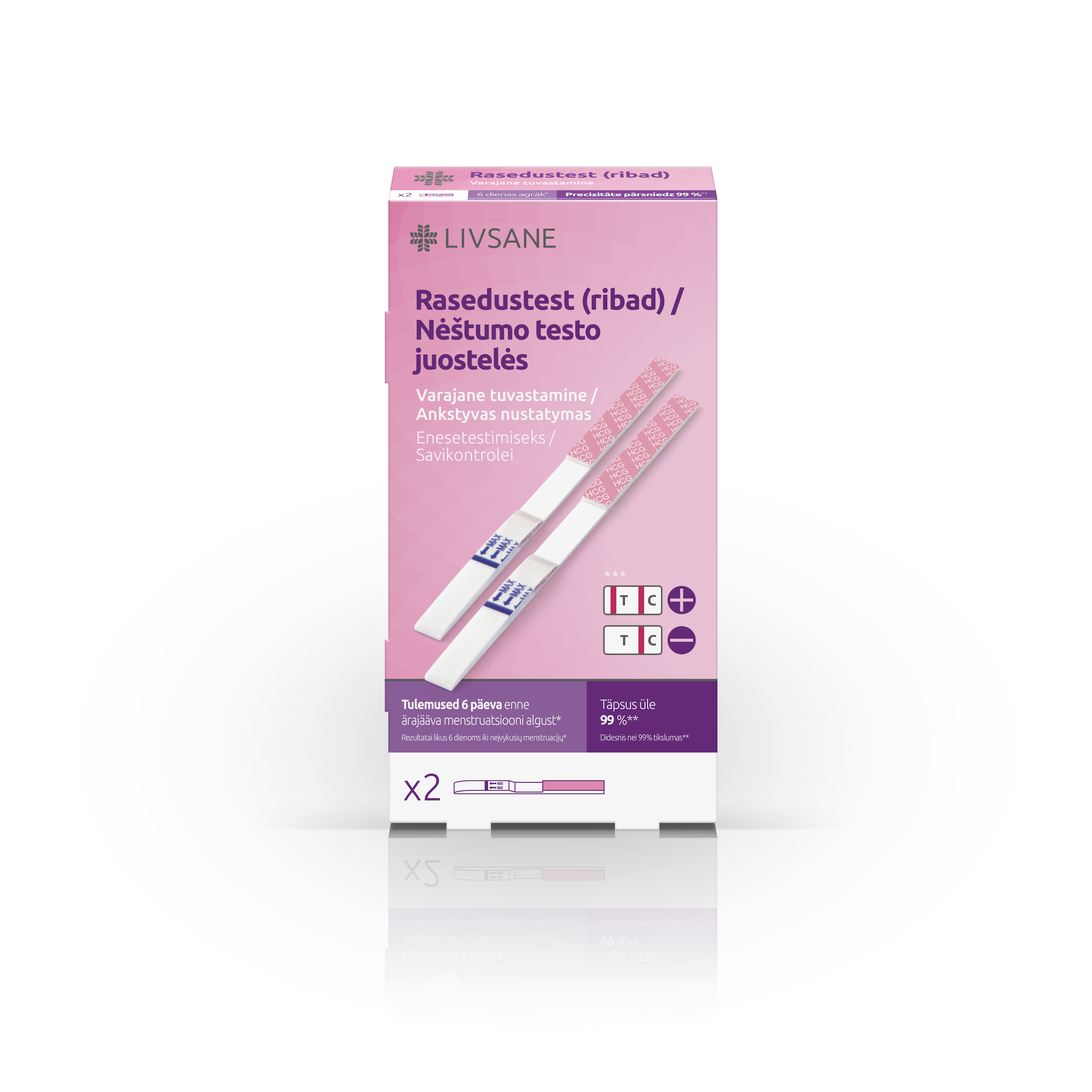 LIVSANE testribad raseduse määramiseks. Varajane rasedustest - tulemusi näitab kuni 6 päeva enne oodatava menstruatsiooni algust. Hoiatused: Ärge kasutage pärast aegumiskuupäeva! Ärge kasutage uriinitesti korduvalt! Visake see pärast ühekordset kasutamist prügikasti!Ärge kasutage uriinitesti, kui fooliumkotike on kahjustatud. Kui fooliumkotike on avatud, tuleb uriinitesti kohe kasutada!Pikemaajaline kokkupuude ümbritseva niiskusega kahjustab toodet! Käsitsege uriiniproove ja kasutatud testimisvahendeid potentsiaalselt nakkusohtlikuna!Hoidke laste kättesaamatus kohas!