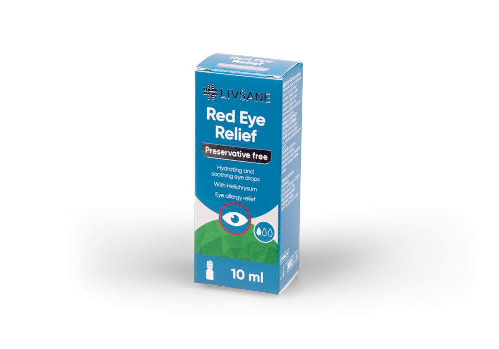 LIVSANE Red Eye Relief silmatilgad on niisutav, rahustav, värskendav, bioloogiliselt ühilduv oftalmoloogiline lahus, mis sisaldab Helichrysumi ehk ahtalehist käokulda (Helichrysum italicum). See aitab pakkuda leevendust allergiate poolt põhjustatud punetavatele ja ärritunud silmadele. Tilgad on säilitusaineteta, steriilsed ja neid saab kasutada ka koos kontaktläätsedega. HOIATUS Juhul, kui silmad ärrituvad, lõpetada toote kasutamine ja võtta ühendust erialaspetsialistiga. Toote mõne komponendi suhtes allergia või ülitundlikkuse korral mitte kasutada. Tilguti otsakuga ei tohi silma pinda puudutada. Hoida eemal soojusallikatest. Mitte alla neelata. Mitte kasutada toodet pärast kõlblikkusaja lõppu. Kasutada 180 päeva jooksul pärast esmast avamist. Pärast kasutamist sulgege pudel tihedalt. Mitte kasutada toodet, kui pudel tundub olevat kahjustatud. Annustada vähemalt 5 minutit enne või pärast teiste paiksete oftalmoloogiliste preparaatide annustamist.