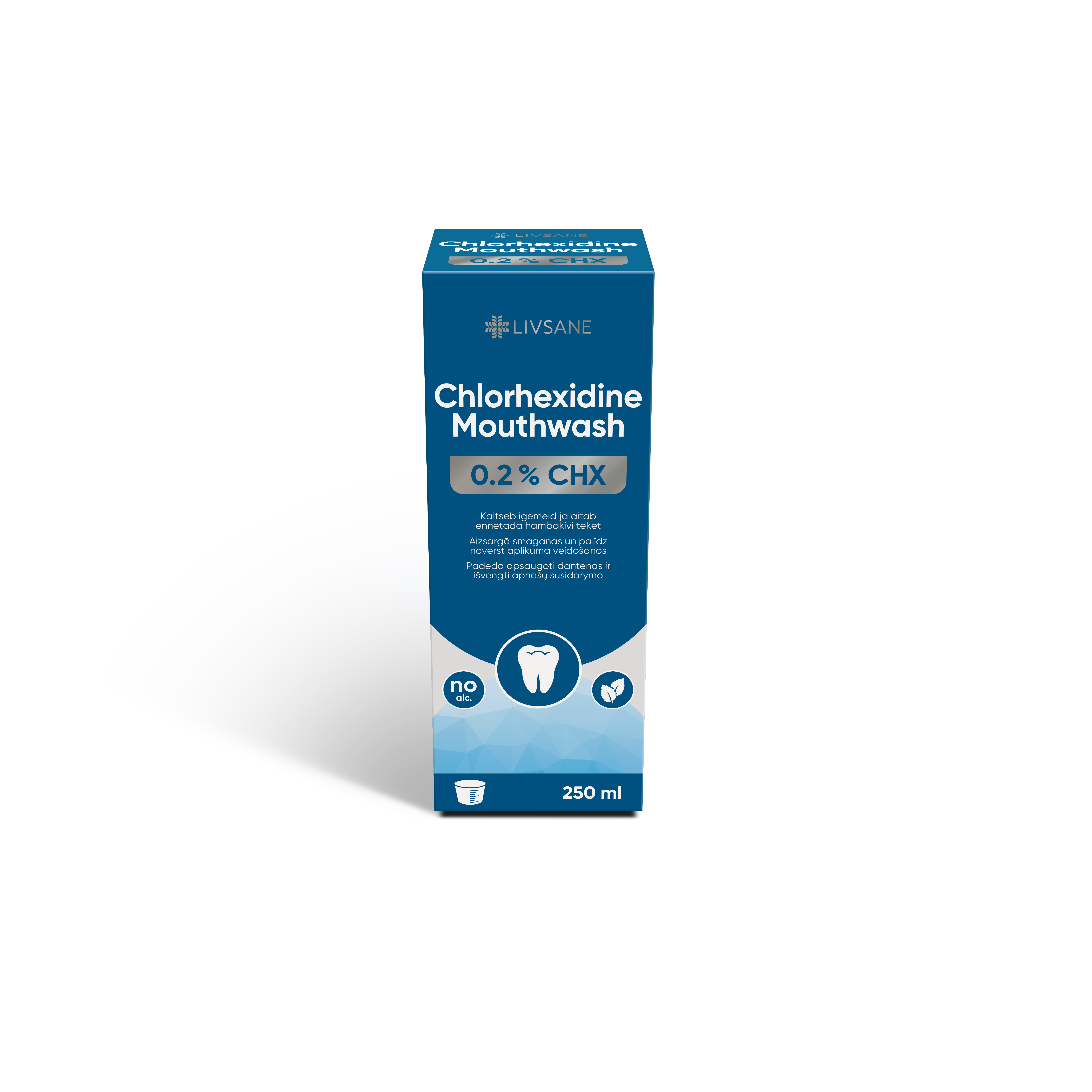 0,2% kloorheksidiini suuloputusvedelik sisaldab kloorheksidiindiglükonaati, mis toimib antibakteriaalse ainena, aidates vähendada hambakatu teket ja kaitsta igemeid. Värske piparmündimaitse. Peamised omadused ja eelised: • Piparmündimaitse värske hingeõhu jaoks • Kaitseb igemeid ja aitab ennetada hambakatu teket • Ilma alkoholita • Ilma mikroplastikuta