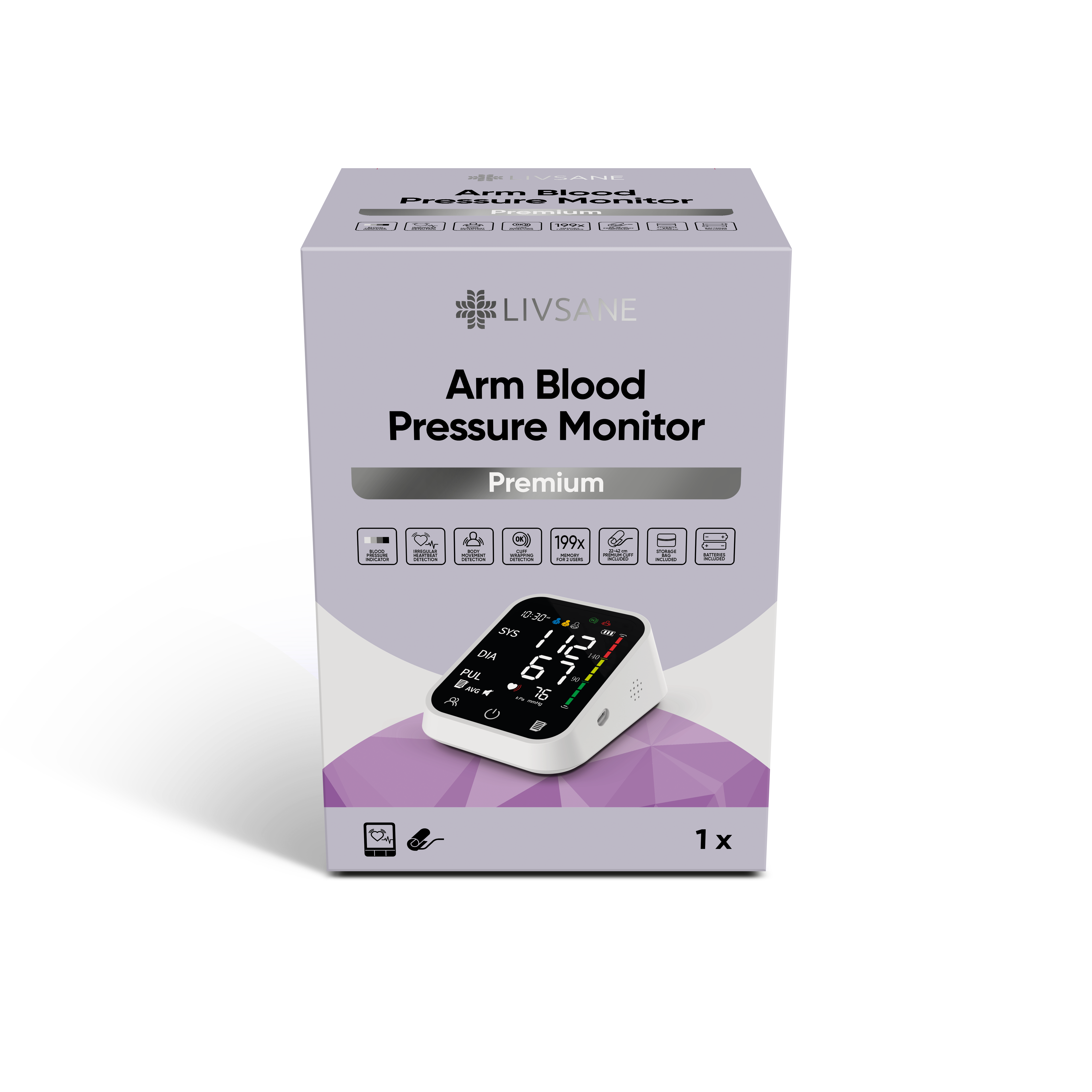 Lihtsasti ümber käe mähitav premium mansett, mis sobib õlavarre ümbermõõdule 22–42 cm. Ebaregulaarse südametöö tuvastamine. Keha liikumise tuvastamine. Manseti mähkimise tuvastamine. Mälufunktsioon kuni 199 mõõteseeria jaoks kahele kasutajale + lisaks külalise režiim. Suur LED-ekraan. Komplektis patareid ja premium hoiukott. Komplektis USB-C kaabel elektriseadmel kasutamiseks. 2-aastane garantii. Meditsiiniseade.