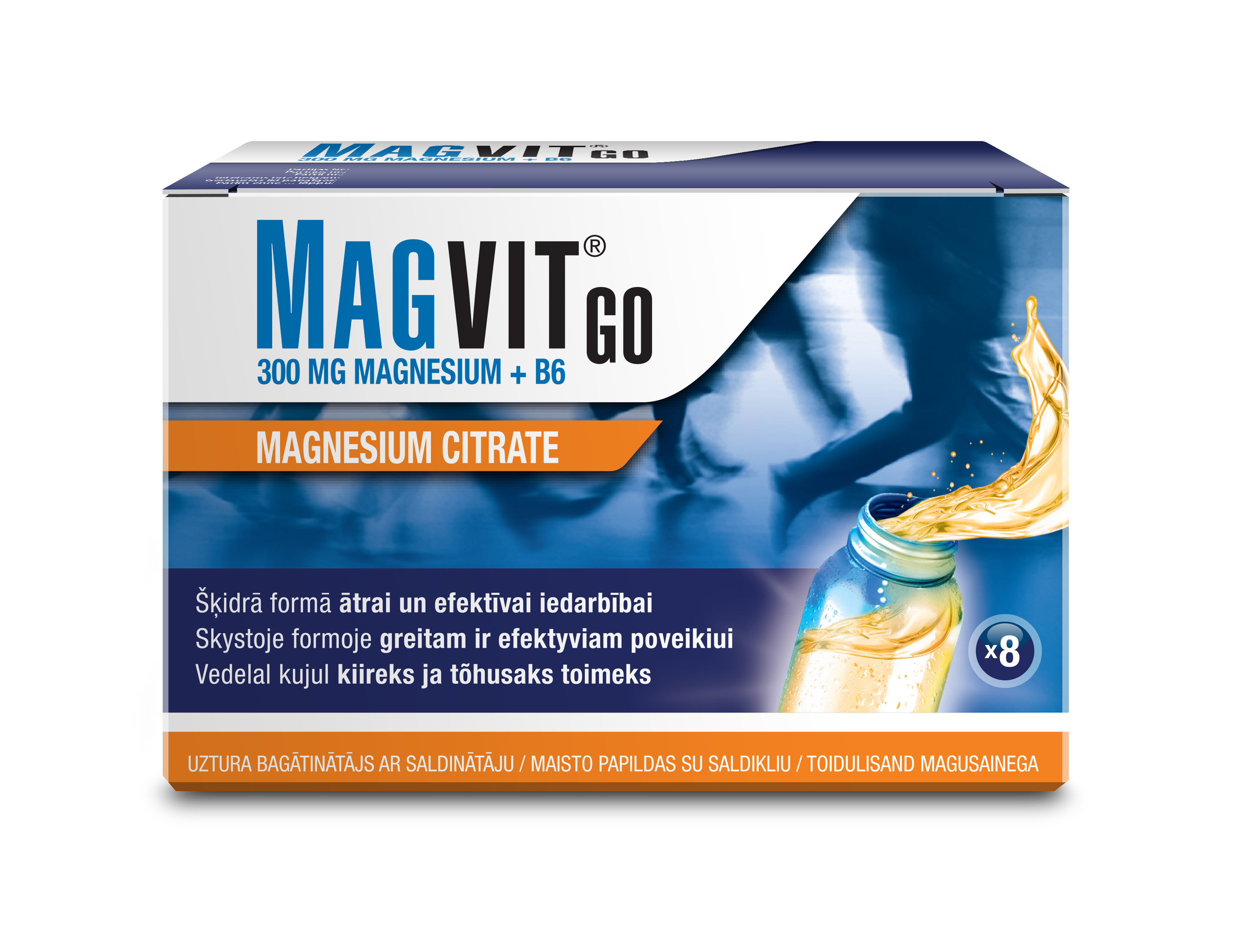 Magneesium aitab kaasa normaalsele lihaste tööle ja närvisüsteemi talitlusele. Suurem magneesiumivajadus on kasvueas noorukitel, aktiivselt spordiga tegelevatel inimestel, rasedatel ning eakatel, samuti vaimse ja füüsilise koormuse korral. Üks fooliumpakend sisaldab 400 mg magneesiumi. Tarvitatav ilma vedelikuta: graanulid lahustuvad suus kohe pärast manustamist - 1 kord päevas. Mahlane apelsinimaitse (naturaalse apelsinipulbriga). Gluteeni-, laktoosi- ja suhkruvaba.