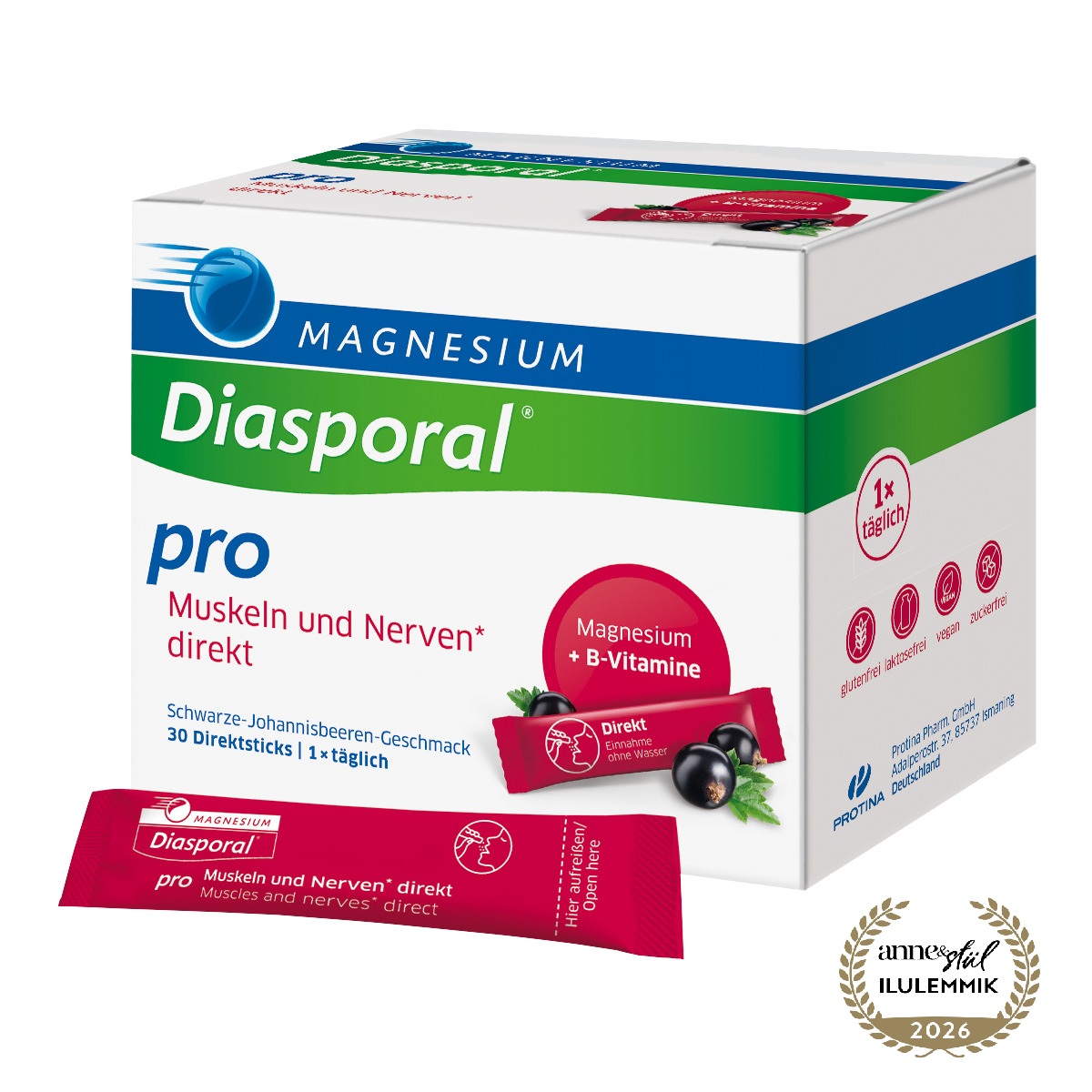 Toidulisand magusainega, sidrunväändiku ja lavendli maitsega. Suures annuses magneesiumi, melatoniini, B2- ja B6-vitamiinidega otsegraanulid – võib võtta ilma vedelikuta. Keha ja vaimu taastumiseks vajame piisavalt kosutavat und. Kuid meie kaasaegne elustiil teeb uinumise sageli keeruliseks. Magnesium-Diasporal® pro uinumiseks* direct võib pakkuda tuge. *Melatoniin aitab lühendada uinumiseks kuluvat aega, kui tarbitakse 1 mg melatoniini vahetult enne magamaminekut. Magneesium, vitamiin B2 ja vitamiin B6 aitavad kaasa närvisüsteemi normaalsele talitlusele ja energiaainevahetusele. Magneesium ja vitamiin B6 aitavad kaasa normaalsetele psühholoogilistele funktsioonidele. **Magustatud ksülitooliga suhkru asemel, mis aitab säilitada hammaste mineralisatsiooni.