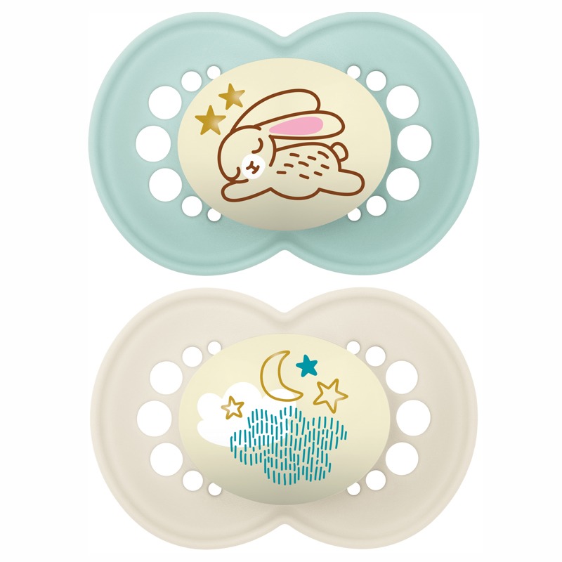 Pimeduses helendav MAM ortodontiline lutt on ideaalne imiku lõua ja hammaste arengule. MAM SkinSoft silikoon on suus väga mugav ja pehme. Suured avad ja kühmud tagavad õhu ringvoolu.