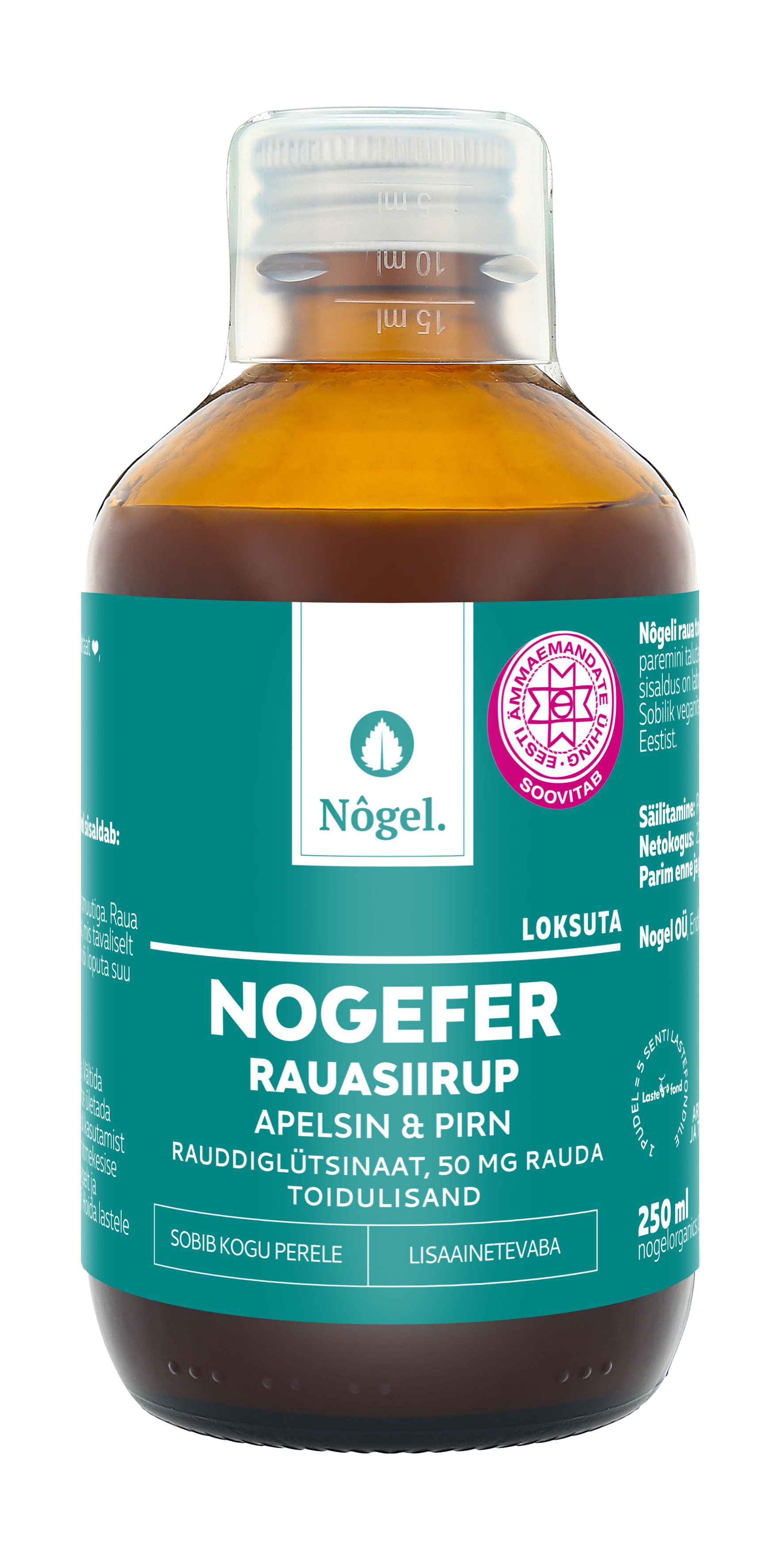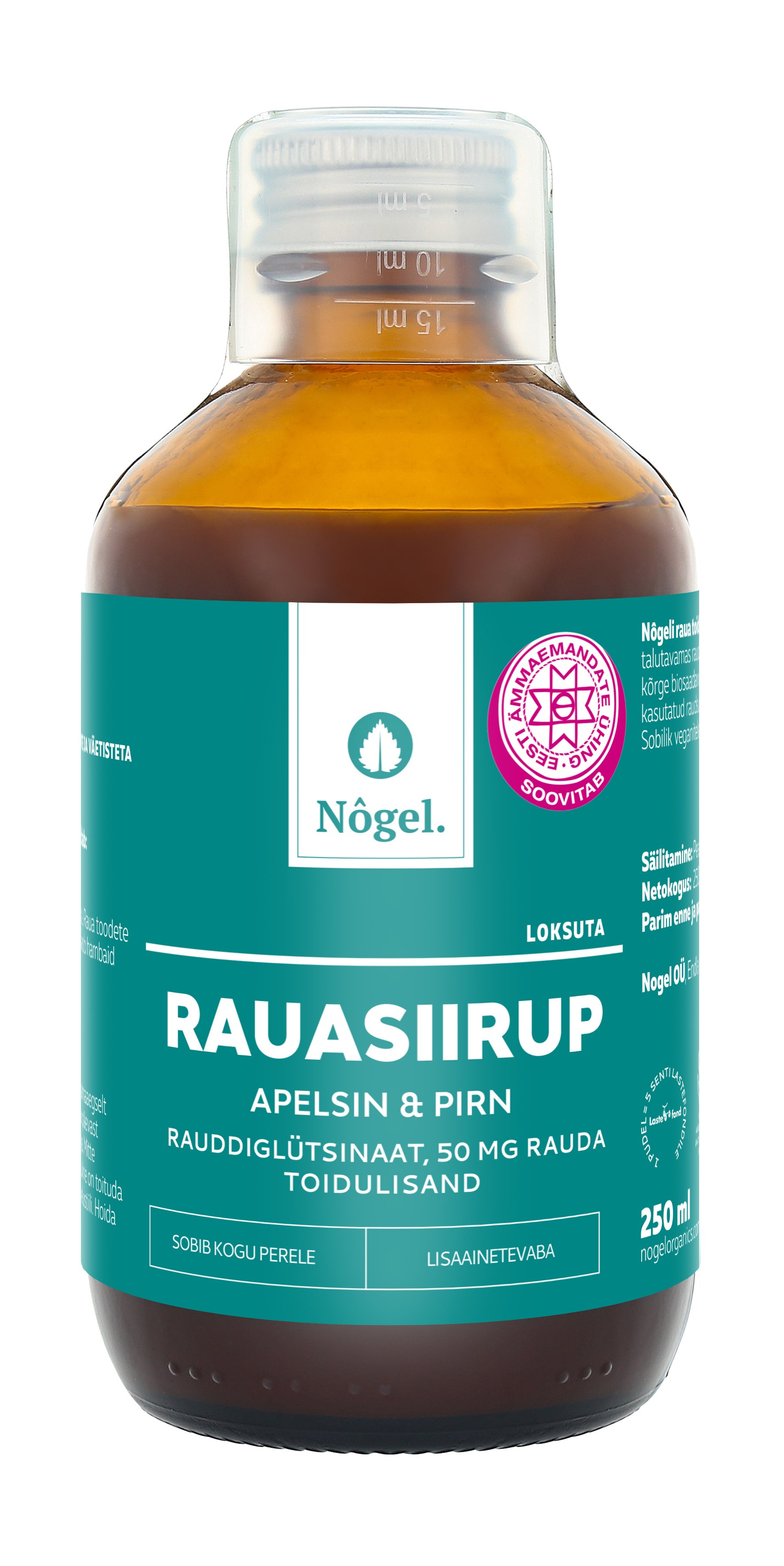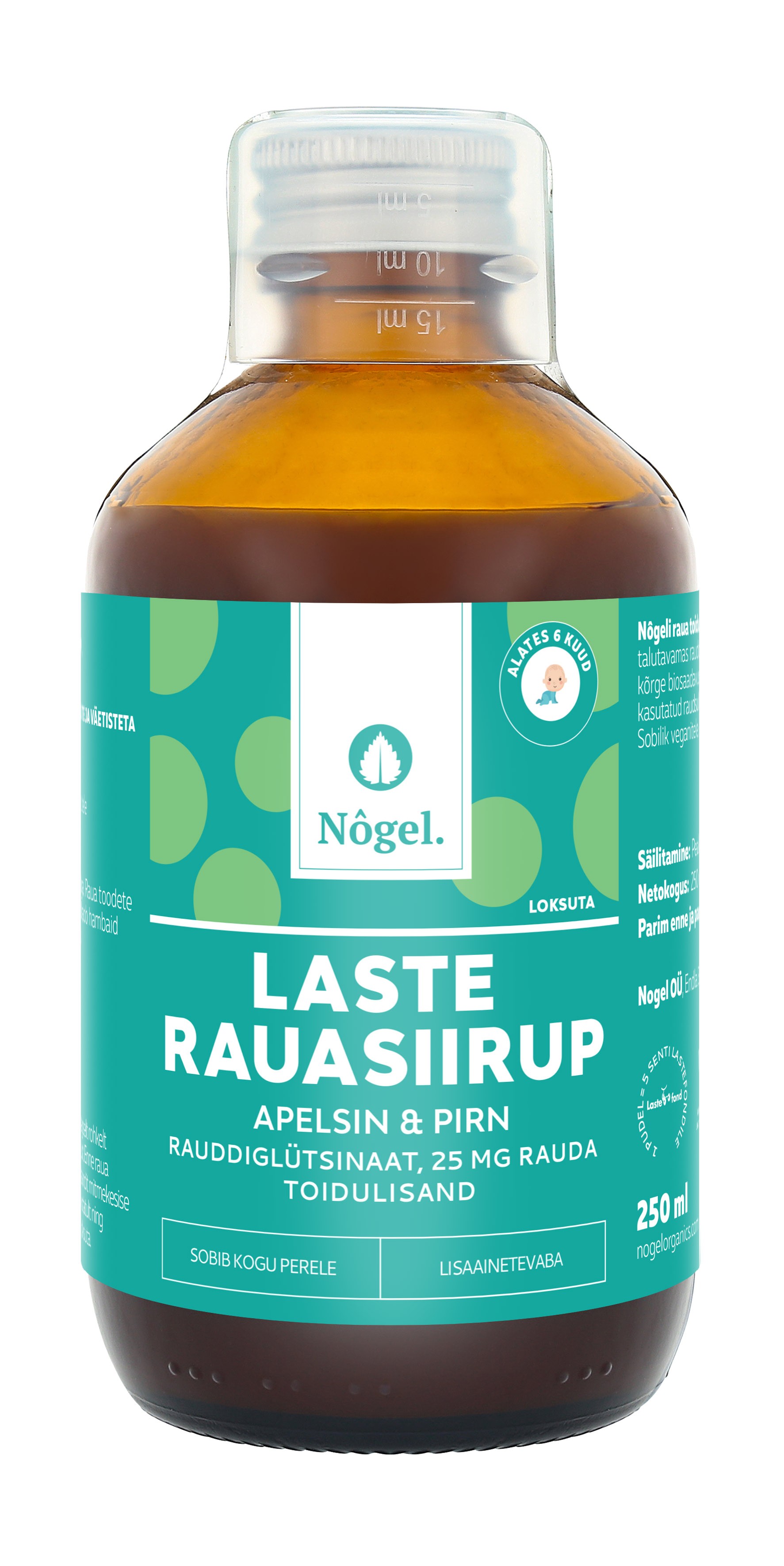 Nôgeli laste rauasiirup sobib alates 6-ndast elukuust kogu perele. Nôgeli raua toidulisandis on raud hästi omastatavas ja paremini talutavamas rauddiglütsinaadi vormis. Iga partii raua sisaldus on laboris kontrollitud. Kontrollitud gluteenivaba. Sobib ka veganitele. Toode on välja arendatud ja toodetud Eestis. Koos Nôgeliga panustad ka heategevusse. Iga ostetud toote kohta annetame Tartu Ülikooli Lastefondile 5 senti.