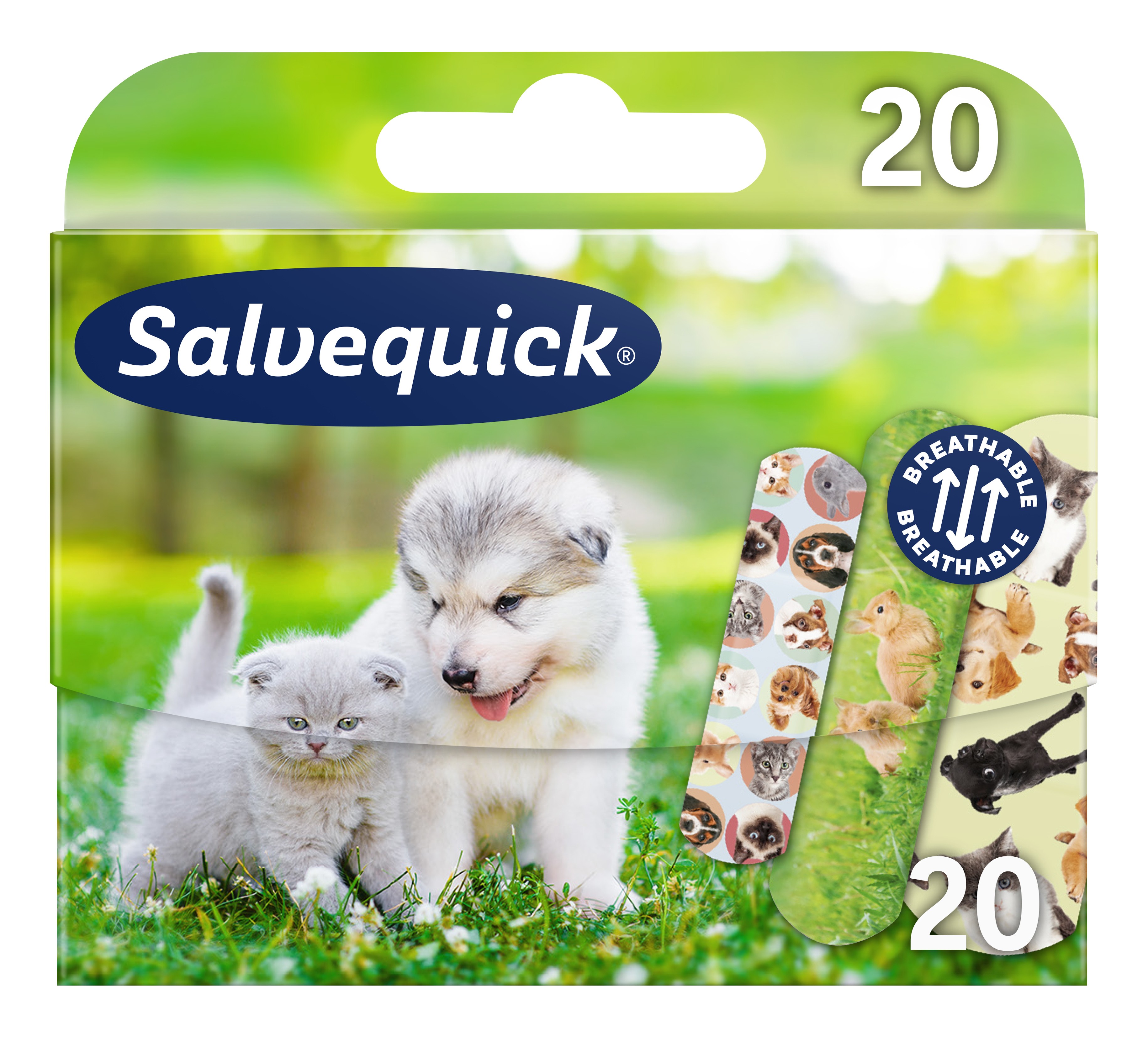 Salvequick plaastrid lastele Animals on erineva disainiga plaastrid lastele kutsikate ja kassipoegade piltidega, mis sobivad tundlikule nahale. Elastsed ja vastupidavad plaastrid on vee- ja mustusekindlad. Õku läbilaskvad plaastrid lasevad nahal hingata. Sobivad aktiivsetele lastele. Pakendis on 20 plaastrit kolmes eri suuruses: 25 mm x 72 mm (4 tk) 19 mm x 72 mm (8 tk) 16 mm x 56 mm (8 tk).