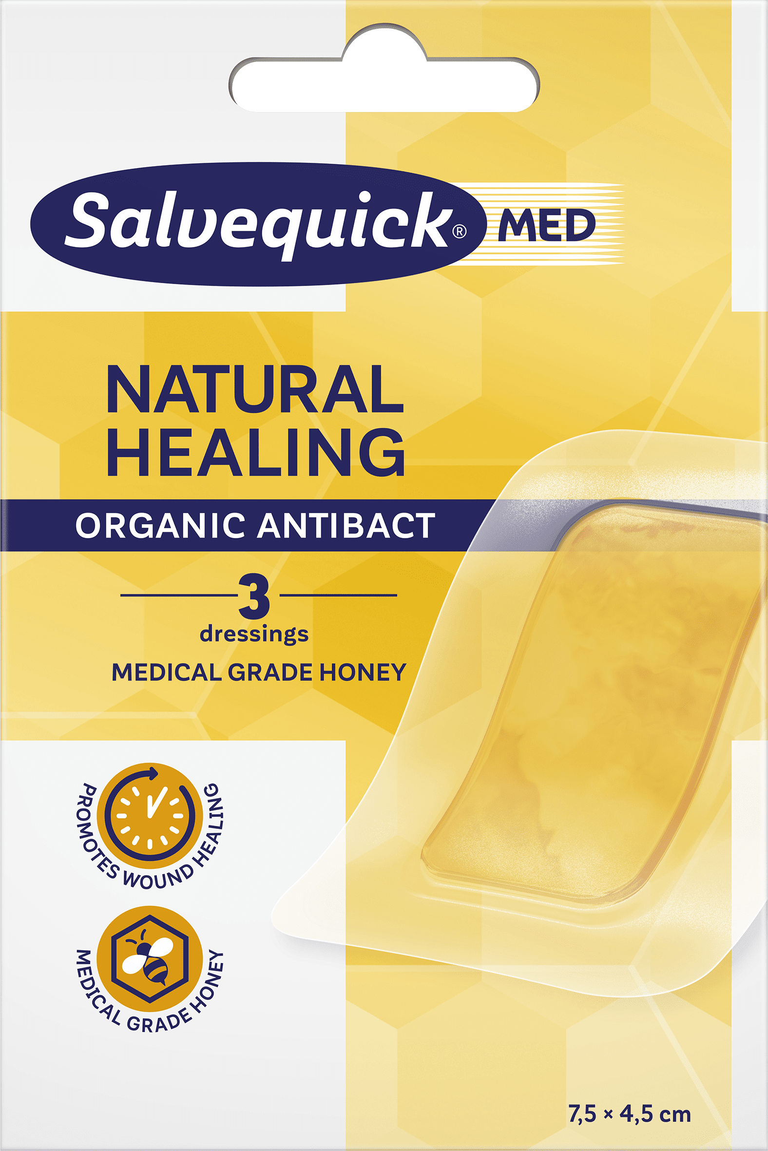 Salvequick Natural Healing on täiustatud haavaside, mis on mõeldud haavade paranemise kiirendamiseks ja infektsioonide ning armide tekke riski vähendamiseks. Looduslikult antibakteriaalset meditsiinilist mett sisaldav hüdrogeelside soodustab haavade paranemist ja takistab infektsioonide teket. Haavapadi on jahutava toimega, rahustab haava ja on suure imamisvõimega – suudab imada kuni 7 korda rohkem eksudaati kui oma kaal. Kleepuvate servade tõttu pole täiendav fikseerimine vajalik. Ei sisalda ravimeid. Pakendis on 3 haavasidet (75 mm x 45 mm), mida võib vahetamata kanda kuni 5 päeva.