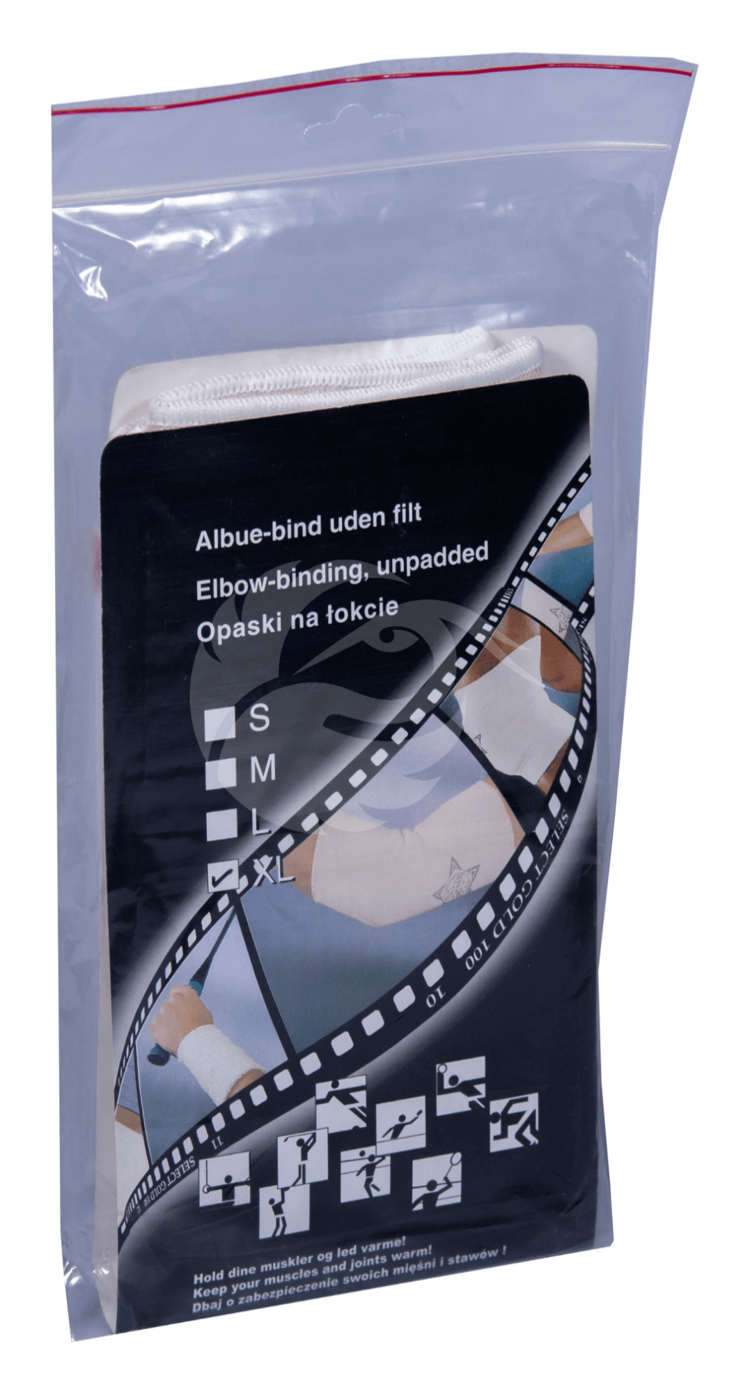 Select randmekaitse, mida võib kasutada enne ja pärast sportimist kui ka sportimise ajal. Elastne tugi hoiab vigastatud ja nõrga liigese soojas ning toestab efektiivselt liigeseid. Puuvilla kiud on kootud koos kummist kiududega nii, et nahk ei puutuks kummiga kokku. Koostis: 90% puuvill, 10% elastik. Lubatud masinpesu 40° vees ja väänamine. Trummelkuivatus ja triikimine keelatud.