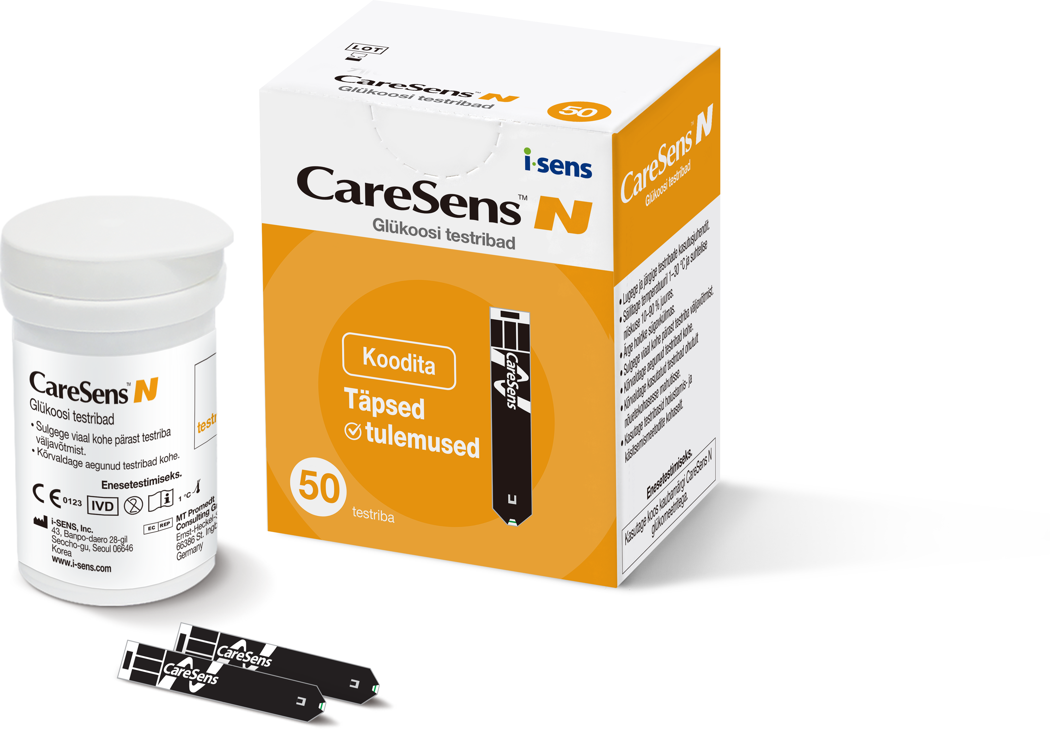 CareSens N glükomeetri testribad on koodivabad ning mõeldud kasutamiseks koos CareSens N Premier glükomeetriga. Glükomeetri testribad on aspireerivat tüüpi (imevad ise piisava koguse verd sisse). Karbis on 50 testriba. Testimiseks on vajalik vaid väga väike verehulk - 0.5μl ning tulemuse saamiseks kulub ainult 5 sekundit. Glükomeetri testribad on aspireerivat tüüpi - imevad ise piisava koguse verd. Testribadel on ka spetsiaalne kontrollaken, millest saad jälgida, kas ribal on piisav kogus verd.