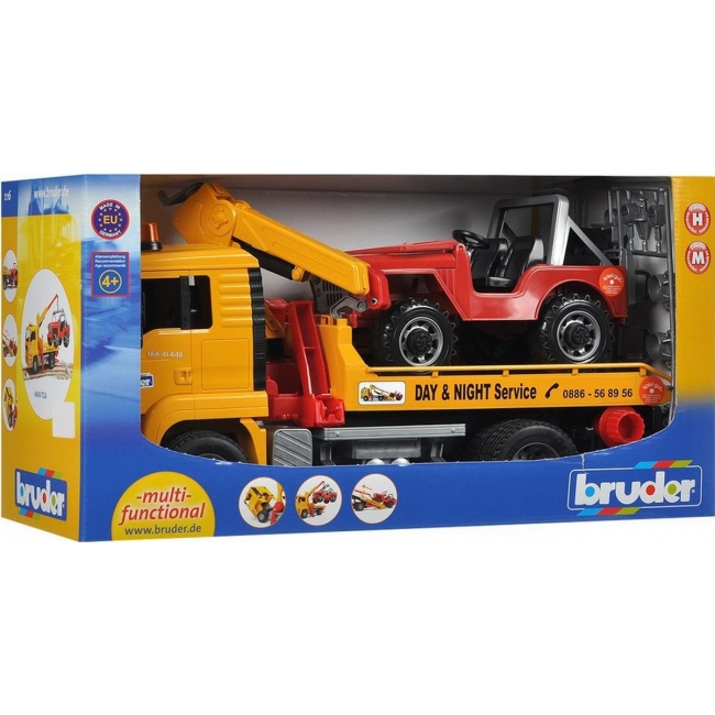 Originaalsõiduki 1:16 koopia, toodetud kõrgkvaliteetsest plastikust, kummist rattad, sobiv õue- ja toamängudeks, heli ja valgusega vilkurid, avatavad uksed, pikendatavad laadimisrambid, tõkiskingi saab hoida tööriistakastides, autokatus eemaldatav. Mõõdud 50.5 x 20.5 x 20.8 cm.