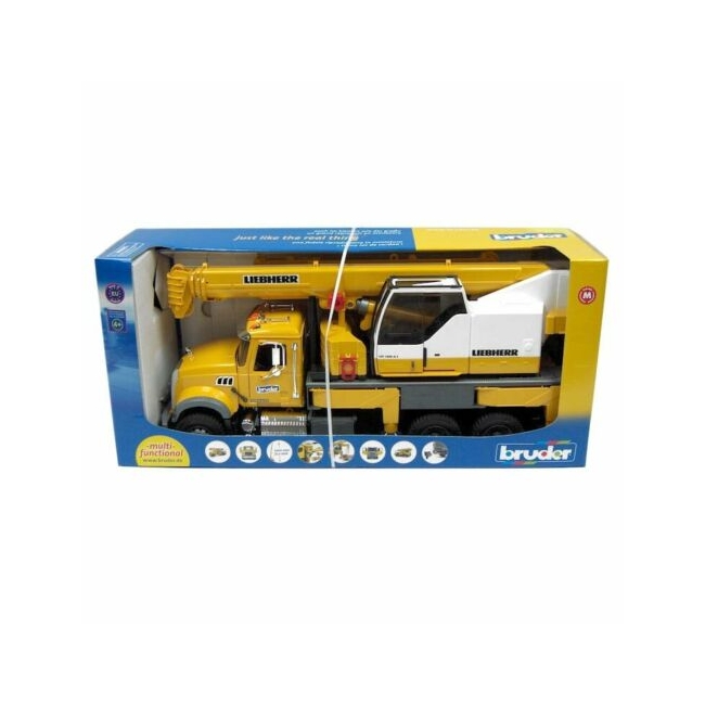 Originaalsõiduki 1:16 koopia, toodetud kõrgkvaliteetsest plastikust, kummist rattad, üleslükatav kabiin, kraana, sobiv õue- ja toamängudeks. Mõõdud 52,1 x 26,7 x 19,1 cm.