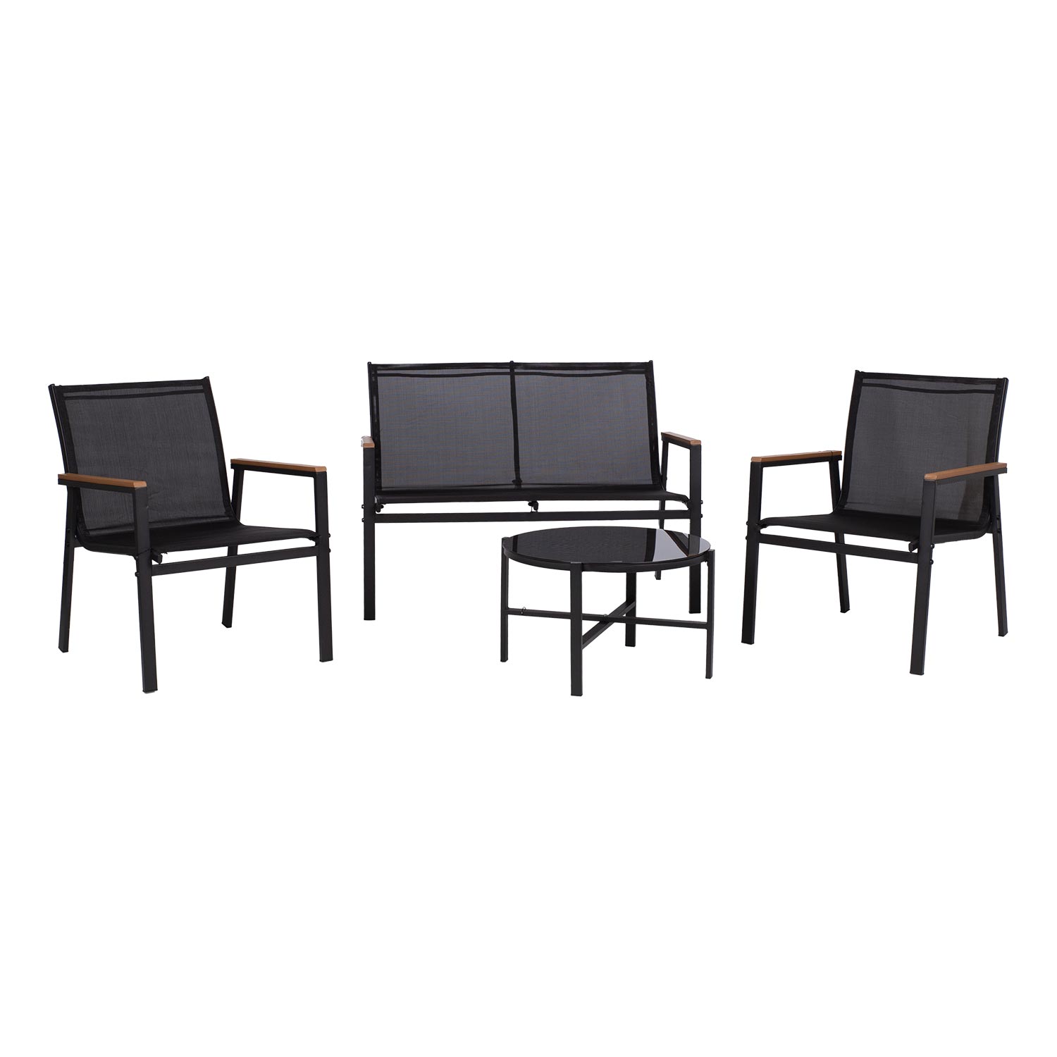 <p>Aiamööblikomplekt AMALFI laud ja 4 tooli. Laua mõõdud on 90x90x74cm. Lauaplaat: 5mm karastatud klaas. Laua ja toolide jalad ja raamid on valmistatud alumiiniumist ja viimistletud halli pulbervärviga. Tooli textilene iste laseb hästi õhku läbi, kuivab kiiresti ja seda on lihtne puhastada. Toolid on virnastatavad ning nende hoiustamine on lihtne ja ruumi säästev. Tooli üldmõõdud on 58x65xH90cm. Kaalupiirang 120kg. HOIUSTAMINE: suvehooaja lõppedes soovitame aiamööblit hoiustada siseruumides. Puhastage ja kuivatage mööbel enne hoiule panekut. Kasutage hoiustamiseks kuiva ning hea ventilatsiooniga ruumi.</p>