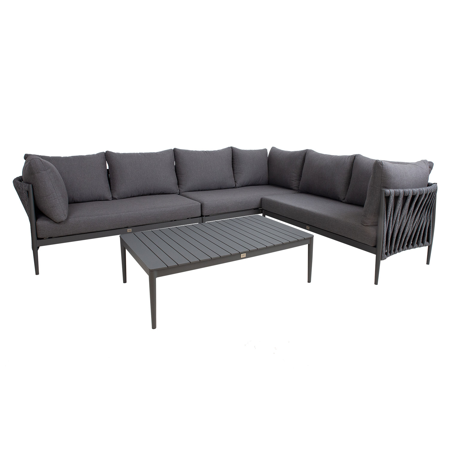 <p>Aiamööblikomplekt BREMEN laud ja nurgadiivan, hall. Nurgadiivan koosneb kolmest 2-kohalisest osast. Diivani halli pulbervärviga viimistletud alumiiniumraami katab efektne nöörpunutis. Padjad kuuluvad komplekti. Padjakatted on valmistatud hallist polüesterkangast. Lauaplaat ja raam on valmistatud alumiiniumist. Diivani 2-kohalise osa mõõdud on 152x83xH71cm. Laua mõõdud on 120x70xH37cm. Diivanimoodulite ühendusklambrid kuuluvad komplekti. Toode on muutlikes ilmastikutingimustes vastupidav ja lihtsalt hooldatav. Kaitset ilmastikuolude eest vajavad ainult padjad. Välitingimustes kasutatava mööbli eluea pikendamiseks soovitame kasutada välimööbli katteid. HOIUSTAMINE: suvehooaja lõppedes soovitame aiamööblit hoiustada siseruumides. Puhastage ja kuivatage mööbel enne hoiule panekut. Kasutage hoiustamiseks kuiva ning hea ventilatsiooniga ruumi.</p>