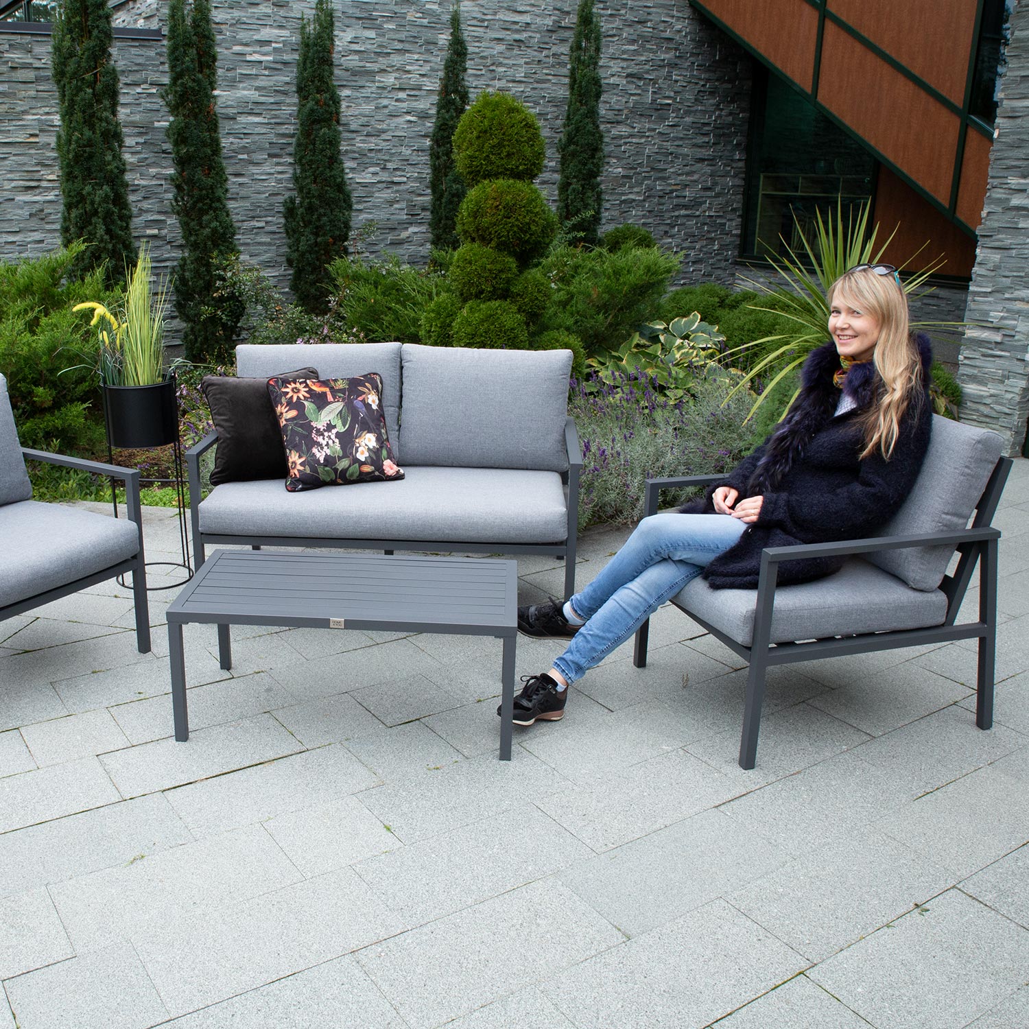 <p>Aiamööblikomplekt CASPER laud, diivan ja 2 tooli. Kõigi komplekti osade põhikonstruktsioon ja lauaplaat on valmistatud alumiiniumist ja viimistletud halli pulbervärviga. Textilene kangast istmed ja seljatoed lasevad hästi õhku läbi, kuivavad kiiresti ja neid on lihtne puhastada. Pehmed istmepadjad kuuluvad komplekti. Tugitoolide seljatoed on reguleeritavad. Reguleerimiskang asub paremal käel, istme ääre all. Laua mõõdud on 120x58,5xH42cm. Diivani mõõdud 175,5x79xH104cm. Tugitooli mõõdud 64x79xH104cm. Padjakatted on valmistatud hallist polüesterkangast. Istmepatjade paksus 10cm, seljatoepatjade paksus 8cm. Toode on muutlikes ilmastikutingimustes hästi vastupidav ja lihtsalt hooldatav. Kaitset ilmastikuolude eest vajavad ainult padjad. Hea lahendus patjade igapäevaseks hoiustamiseks ja kuivana hoidmiseks on padjakast. Välitingimustes kasutatava mööbli eluea pikendamiseks soovitame kasutada välimööbli katteid. HOIUSTAMINE: suvehooaja lõppedes soovitame aiamööblit hoiustada siseruumides. Puhastage ja kuivatage mööbel enne hoiule panekut. Kasutage hoiustamiseks kuiva ning hea ventilatsiooniga ruumi.</p>
