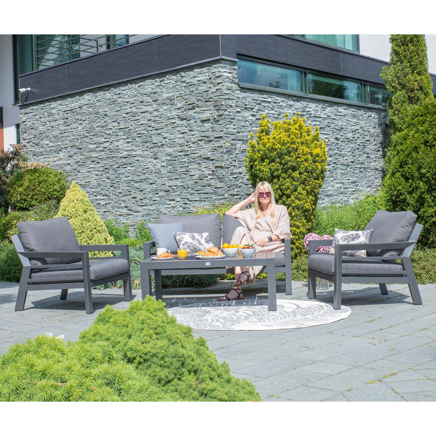 Aiamööblikomplekt TOMSON laud, diivan ja 2 tooli, hall GTIN: 4741243137073 Aiamööbel <p>Aiamööblikomplekt TOMSON laud, diivan ja 2 tooli, hall. Diivan, tugitoolid ja laud on valmistatud alumiiniumist ning viimistletud halli pulbervärviga. Laua mõõdud on 116x70xH45cm. Diivani mõõdud on 148x85,5xH71,5cm. Tugitooli mõõdud 80x85,5xH71,5cm. Padjad kuuluvad komplekti. Padjakatted on valmistatud hallist olefin kangast. Toode on muutlikes ilmastikutingimustes hästi vastupidav ja lihtsalt hooldatav. Kaitset ilmastikuolude eest vajavad ainult padjad. Välitingimustes kasutatava mööbli eluea pikendamiseks soovitame kasutada välimööbli katteid. HOIUSTAMINE: suvehooaja lõppedes soovitame aiamööblit hoiustada siseruumides. Puhastage ja kuivatage mööbel enne hoiule panekut. Kasutage hoiustamiseks kuiva ning hea ventilatsiooniga ruumi.</p> | 1-3 tp | 1309,00 € | Poodi | |
