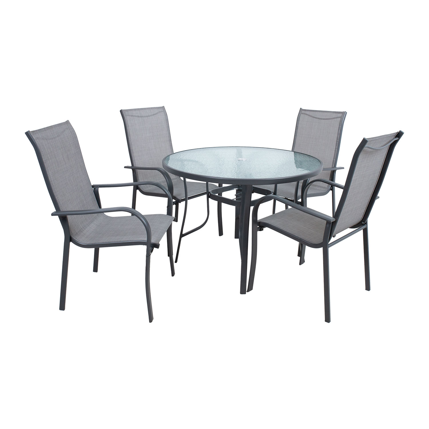 Aiamööblikomplekt DUBLIN laud ja 4 kokkupandavat tooli, hall GTIN: 4741617107824 Söögilauad <p>Aiamööblikomplekt DUBLIN laud ja 4 kokkupandavat tooli, hall.<br /> Laua mõõdud on D90xH71cm. Lauaplaat: 5mm läbipaistev laineline klaas.<br /> Laua keskel on päikesevarjuauk D4cm. Laua raam ja jalad on valmistatud terasest ja viimistletud tumepruuni pulbervärviga.<br /> Tooli üldmõõdud on 54x69xH102cm.<br /> Tooli textilene iste laseb hästi õhku läbi, kuivab kiiresti ja seda on lihtne puhastada.<br /> Tooli raam on valmistatud terasest ja viimistletud tumehalli pulbervärviga.<br /> Seljatoe reguleerimiseks tõstke käetoed üles, valige sobiv seljatoe asend ja fikseerige käetoed. Võimalik on valida viie erineva positsiooni vahel.<br /> Kokkupanduna on tooli lihtne kaas võtta või hoiustada. Tooli mõõdud kokkupanduna 54x81x17cm. Istme laius 45cm, istme sügavus 45cm, istme kõrgus 44cm. Seljatoe kõrgus 69cm, käetoe kõrgus maast 63cm.<br /> Kaalupiirang 100kg.</p> | 1-3 tp | 261,00 € | Poodi | |