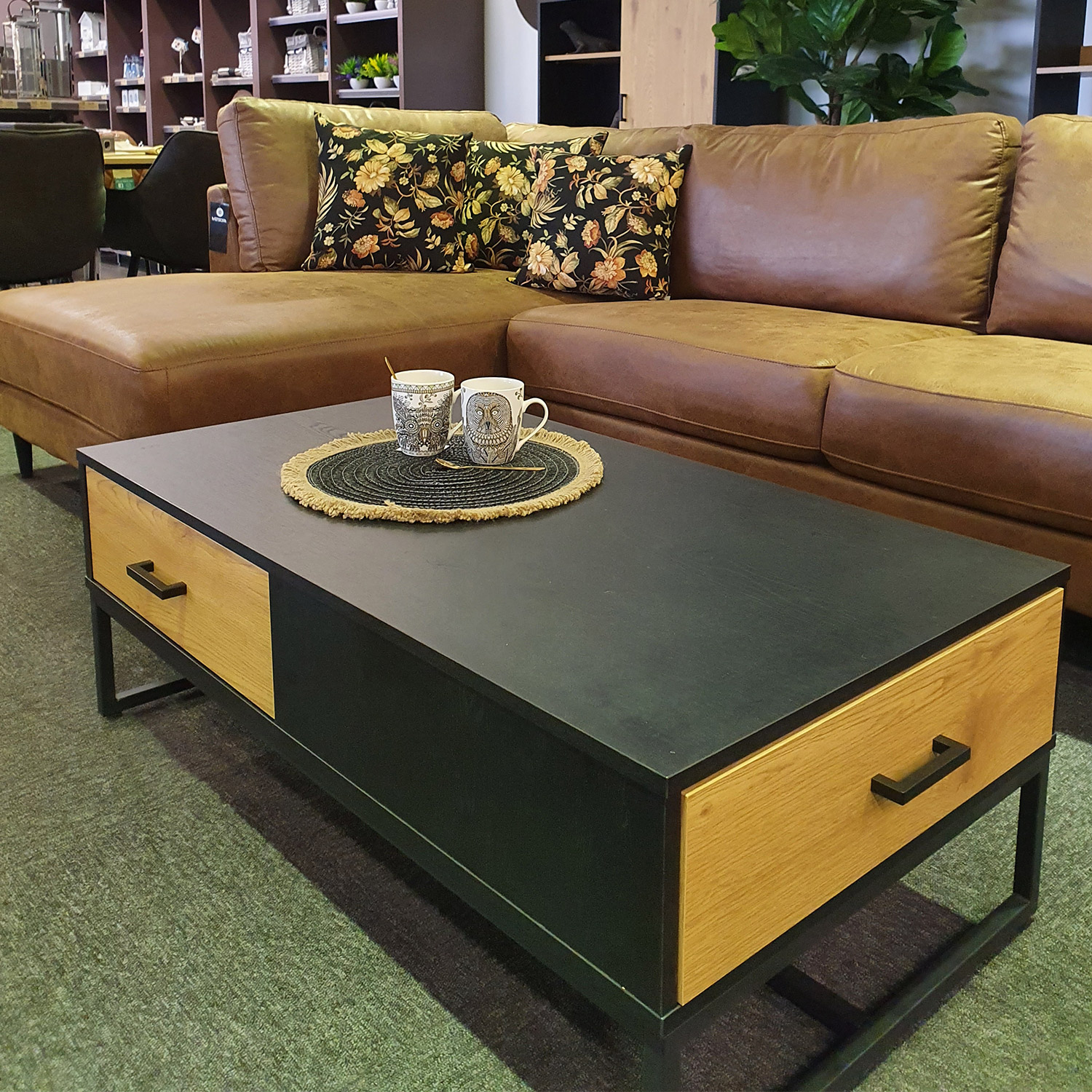 <p>Diivanilaud HAMPTON 2-sahtliga 120x60xH40cm. Laud on valmistatud tammedekooriga melamiinplaadist. Sahtlite esipaneele kaunistavad kitsad tammevärvi MDF liistud mustal taustal. Sahtlid liiguvad metallsiinidel. Laua metallist alusraam on viimistletud musta pulbervärviga.</p>