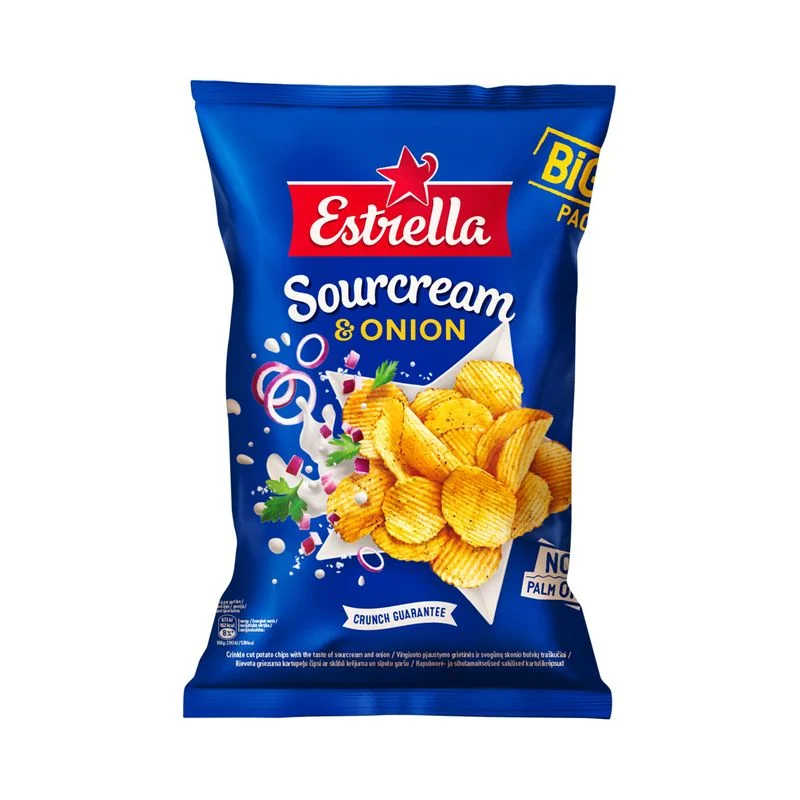 Vähem Poodi Kartulikrõpsud ESTRELLA hapukoore ja sibulaga 180g GTIN: 4779028345757 Krõpsud