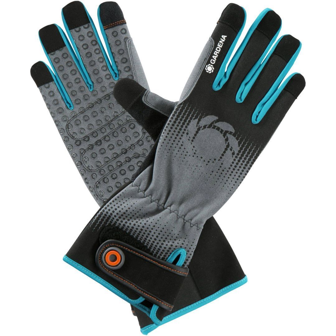 Gardena keskmistele kätele mõeldud aiandus- ja hoolduskindad. Täiuslikult sobiv töökinnas on varustatud paljude uuenduslike funktsioonidega, mis muudavad kergeks aia- ja taimehooldustööd, nagu lillede ja taimede istutamine. See sobib hästi lehtede kogumiseks ja aia puhastamiseks. Peopesal olev silikoonkate annab suurepärase haarde, nii et teil on alati kõik kontrolli all, mis on eriti kasulik aiasaaduste kandmisel. Kinda põhiosa koosneb painduvast ja hingavast võrkmaterjalist. See annab suure eelise, eriti pikema kasutamise korral, sest käed ei hakka liigselt higistama. Kindad on varustatud higi imava mikrovillaga. Tänu manseti ja käe tagaküljel olevale painduvale materjalile, annab kinnas ideaalse istuvuse. Kui soovite aiatööde ajal oma nutitelefoni või tahvelarvutit kasutada, pole see probleemiks. L suuruse kinnaste jaoks on loodud nutitelefoni toega kinda nimetissõrme ja pöidla vaheline praktiline funktsioon Mobile Touch, nii et te ei peaks kinnast eemaldama. Lisaks on aia- ja hoolduskinnale omistatud Oeko-Tex® Standard 100 sertifikaat, mis tähendab, et kasutatavad tekstiilid ei sisalda kahjulikke aineid. 65% polüester, 15% nailon, 12% puuvill, 6% polüuretaan, 2% elastaan